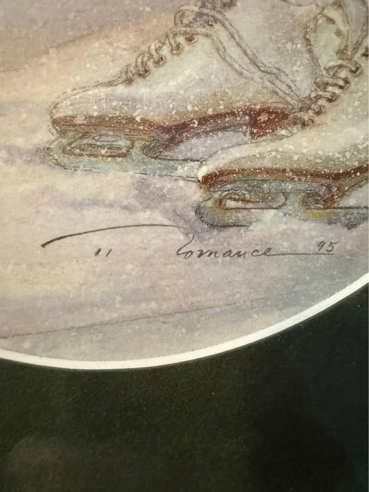 a print of the painting "Evening Skaters" by Canadian artist Tri