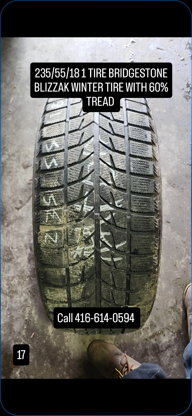 27Selling a Bridgestone Blizzak winter tire, size 235/55/18. It's got about 60% tread left, so it's still got lots of life for those snowy Canadian winters!