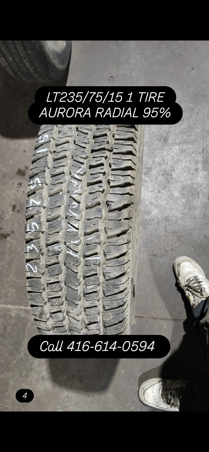 Buy & SellLT235/75/15 Aurora Radial Tire - 95% TreadLT235/75/15 Aurora Radial Tire - 95% Tread$60Selling a single LT235/75/15 Aurora Radial tire. It's in great shape with about 95% of the tread remaining. Perfect if you need a replacement!ConditionLike new0 chats·0 favorites·1 viewsSELLERhqualityautoserviceClairville270 reviewsWHERE TO MEEThigh quality auto service