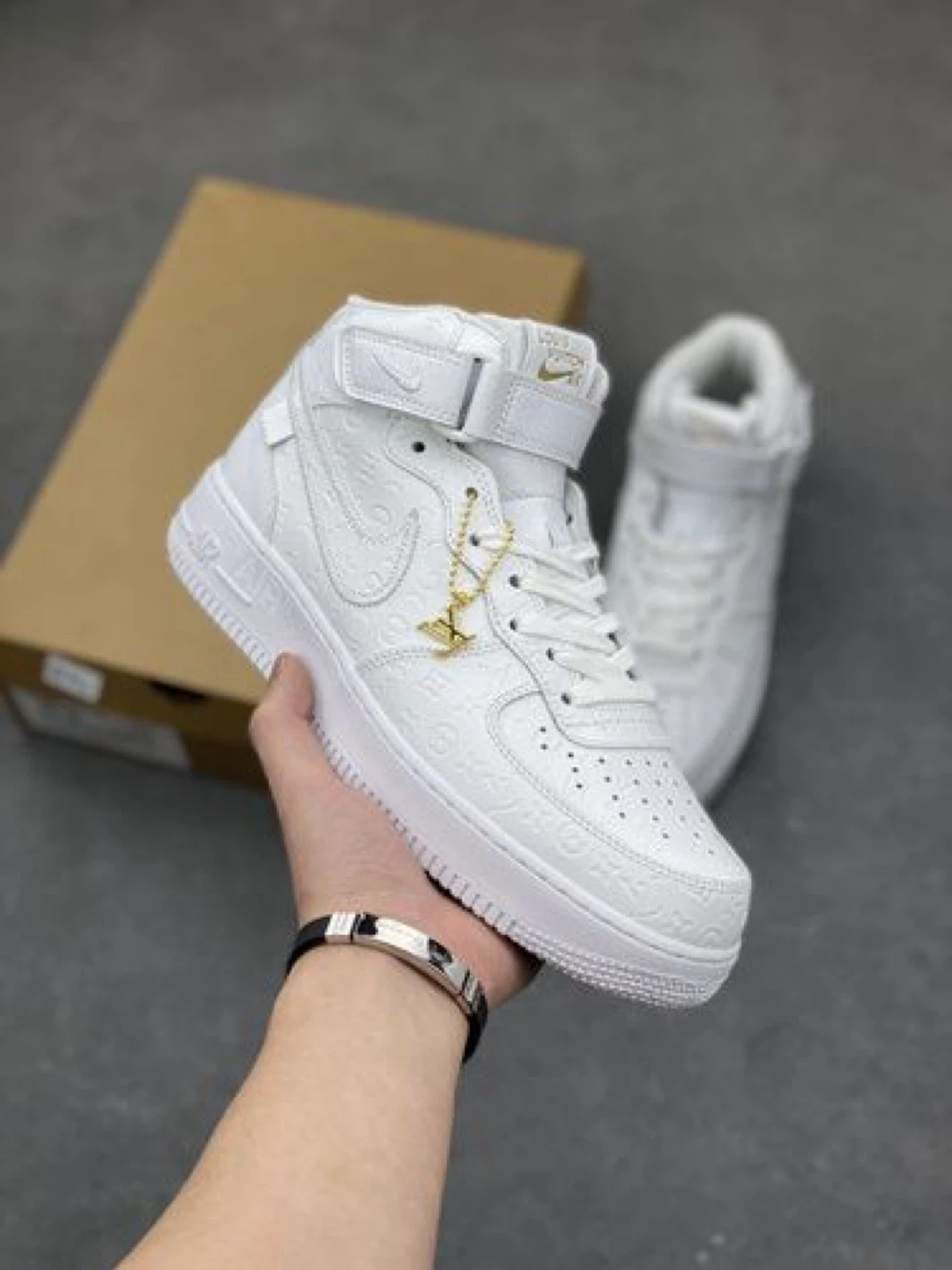 Selling a pair of Nike Air Force 1 Mid sneakers in collaboration with Louis Vuitton. These are in white and come with the box. Great condition!