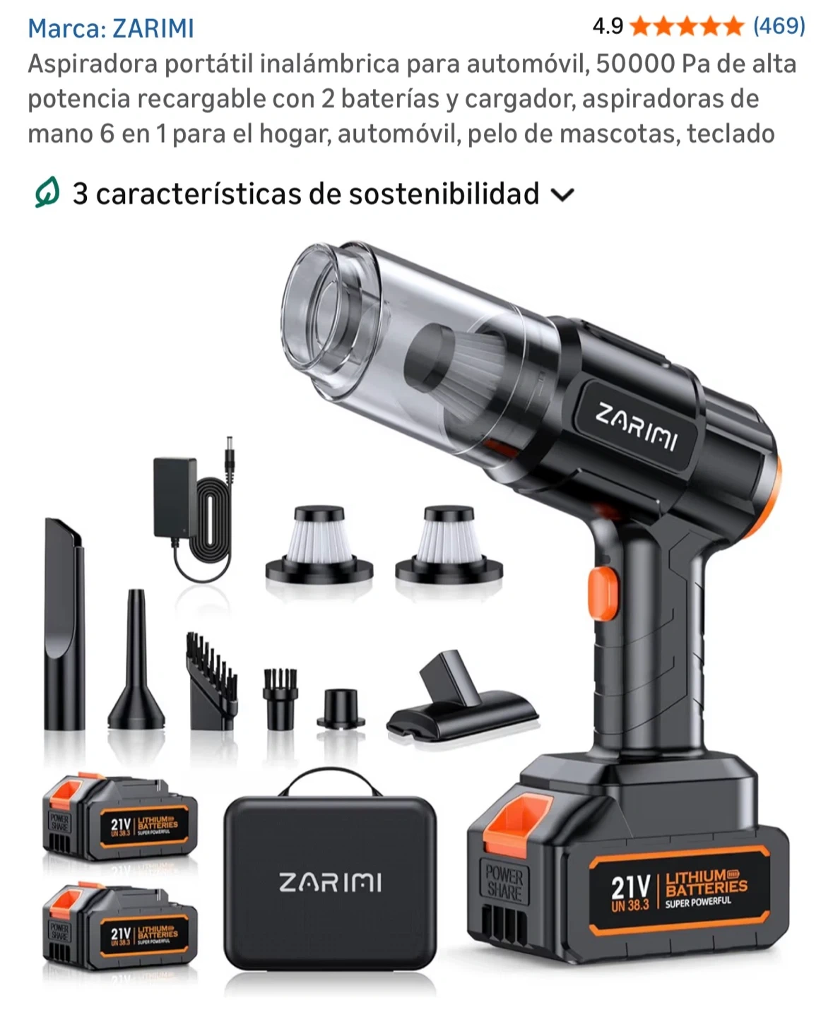 Selling a Zarimi handheld vacuum in excellent condition! It features a brushless motor and high power suction. It's a 6-in-1 multifunctional vacuum with long-lasting dual batteries. The package includes a user's manual and multiple attachments for various cleaning needs