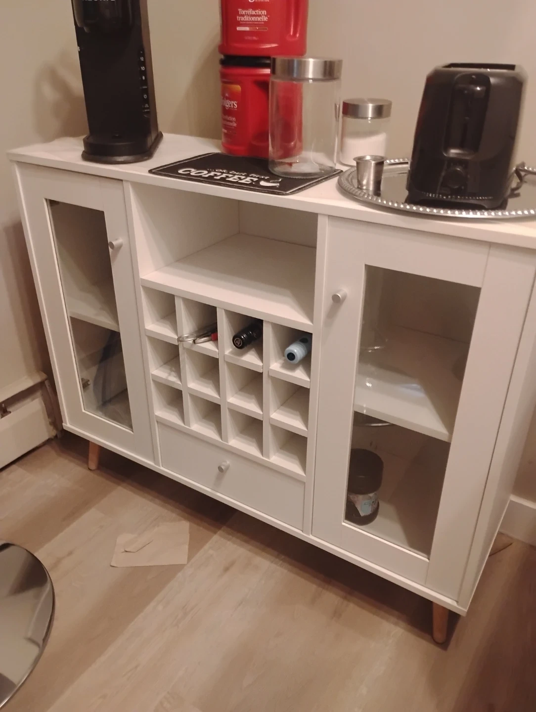 White Storage Cabinet with Wine Rack