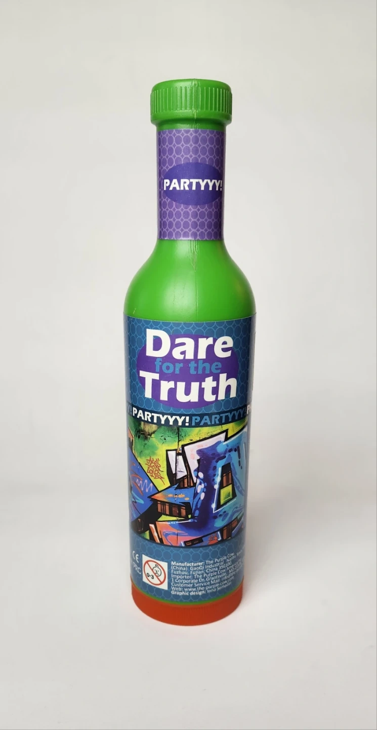 Get ready for the ultimate party game with The Purple Cow Dare for Truth Spin The Bottle Game! This card game is perfect for 3 players or more and is great for both boys and girls over the age of 12. The Partyyy Edition is sure to bring endless laughs and entertainment to any gathering.