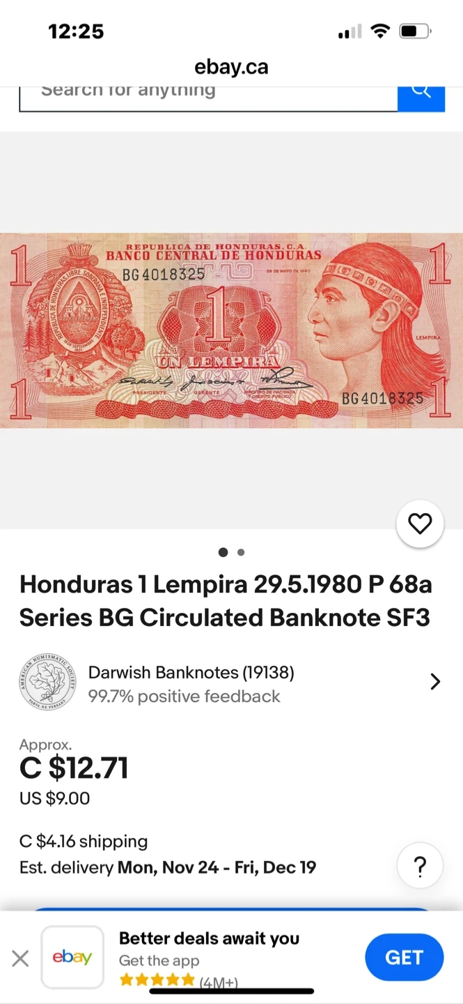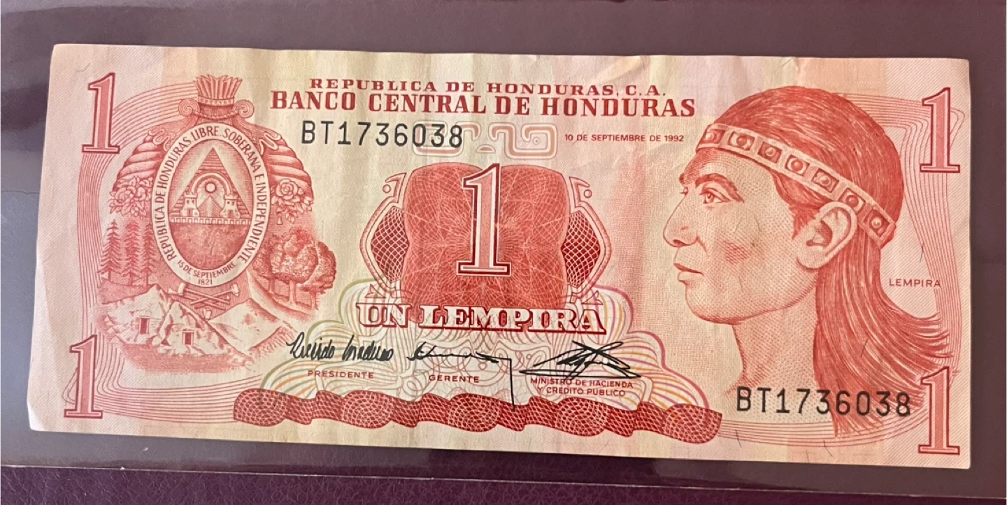 286Available only today Selling a Honduras 1 Lempira banknote. It's in circulated condition.