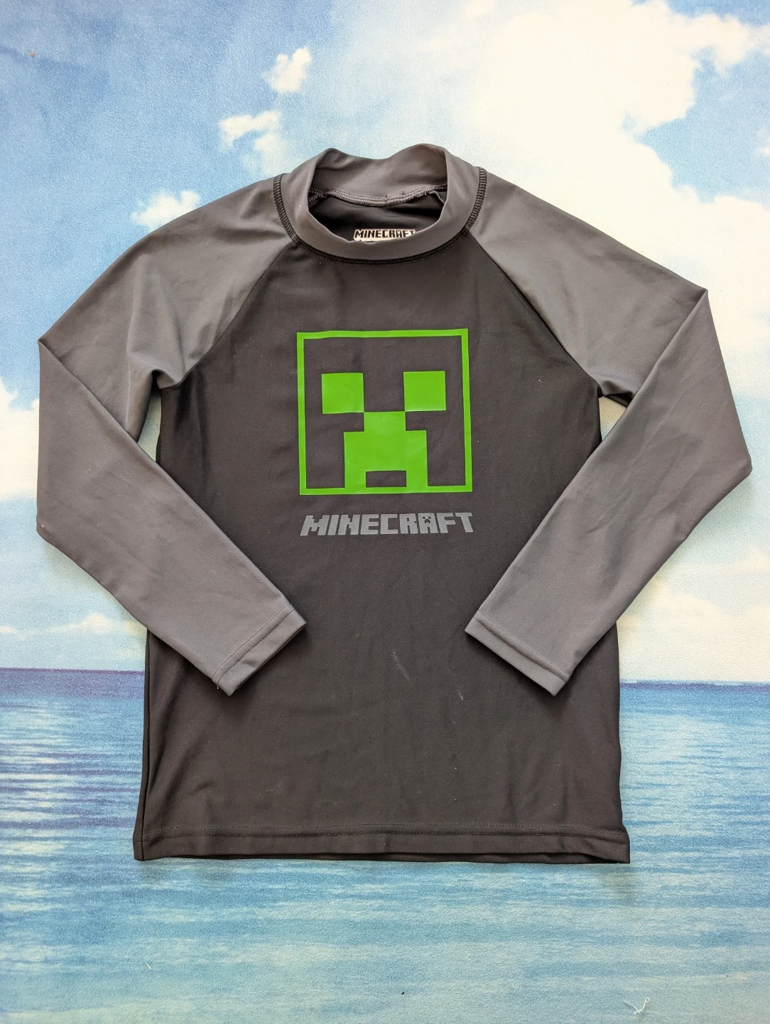 371Like new Minecraft Youth Long Sleeve Swim Shirt, size for 8 years old. The shirt features the iconic Creeper face design. Perfect for any young swimmer / Minecraft fan! Pickup 10 Empress Ave, North York. Cash only.