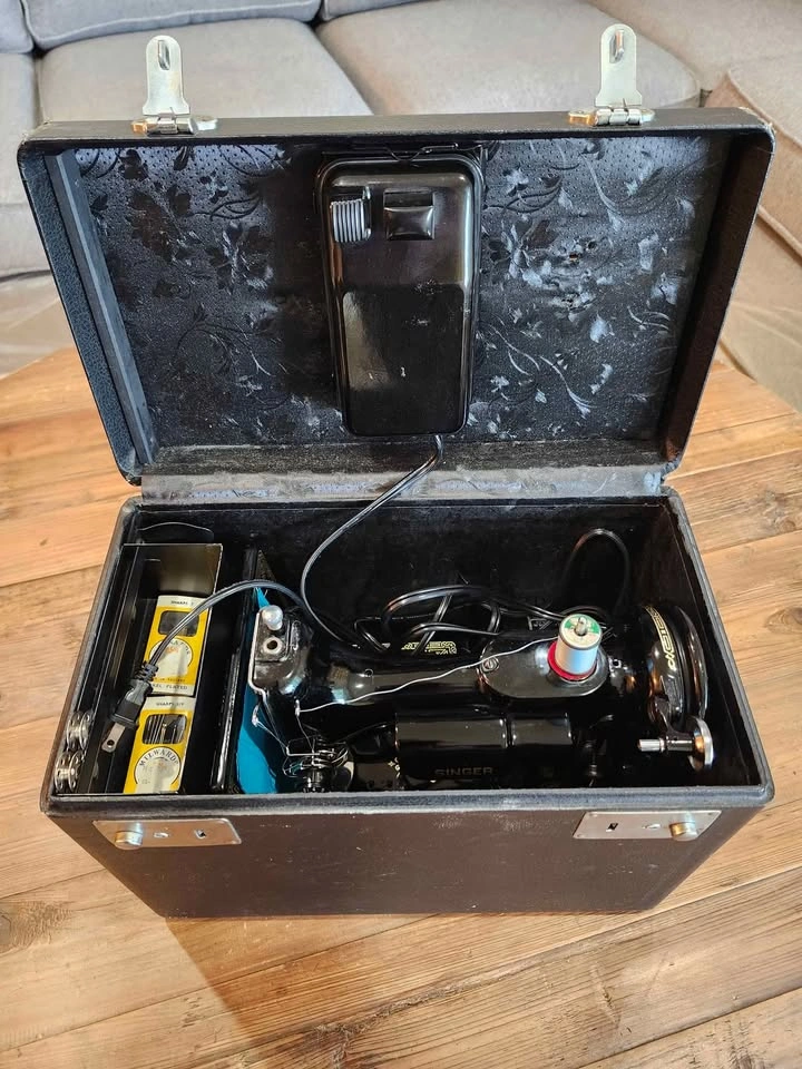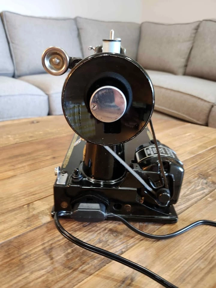 Refurbished by themachineguy.ca including: cleaned, oiled, adjusted, new needle, new foot pedal cord / power cord, and new rubber feet.