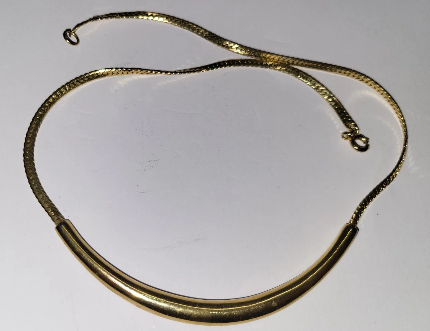 Selling a Trifari gold tone collar necklace. It's a beautiful piece that would be a great addition to any outfit. The necklace is in great condition and ready for a new home!