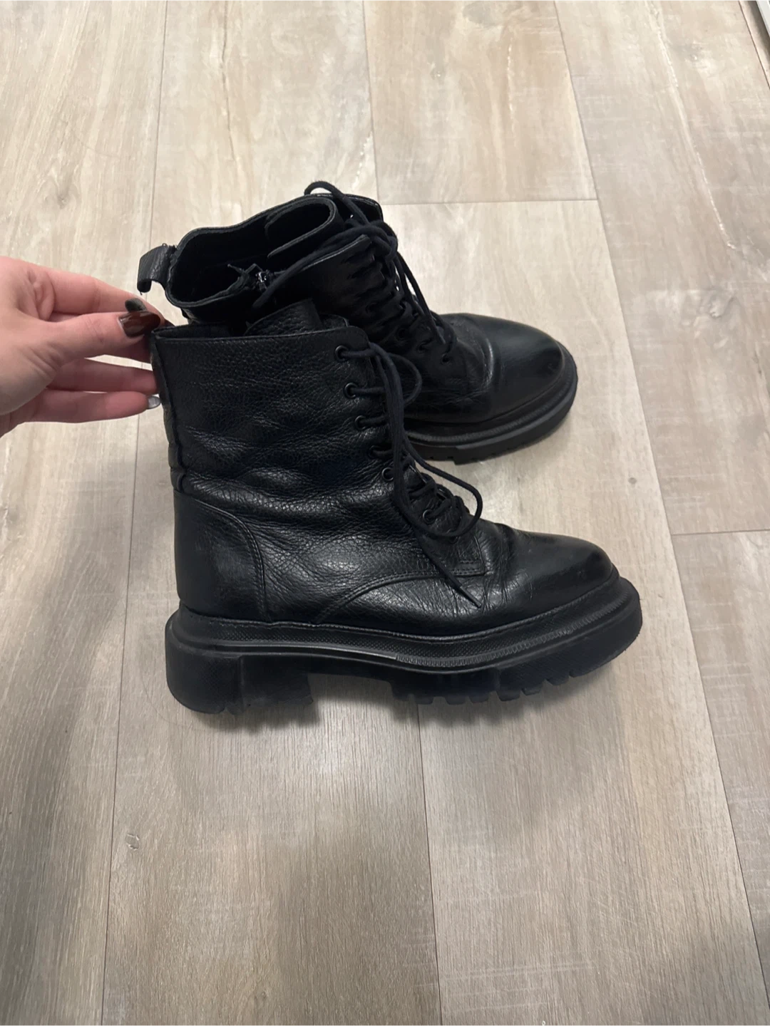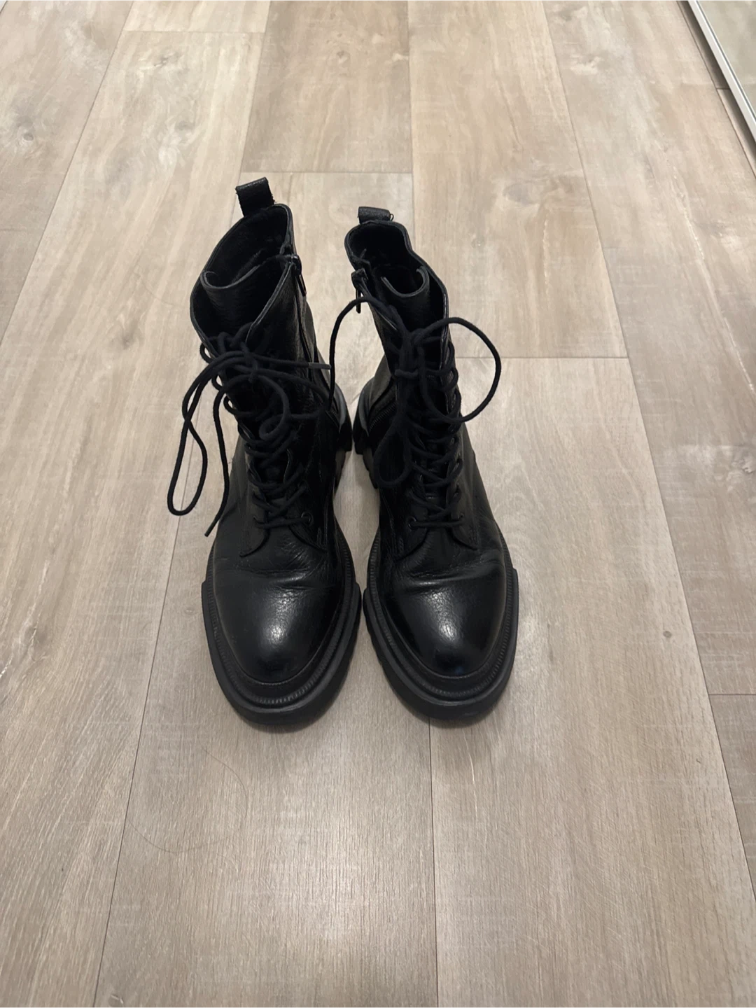 119Selling a pair of black leather ankle boots. They're in great condition and have a stylish, chunky sole. Perfect for adding a bit of edge to any outfit.
