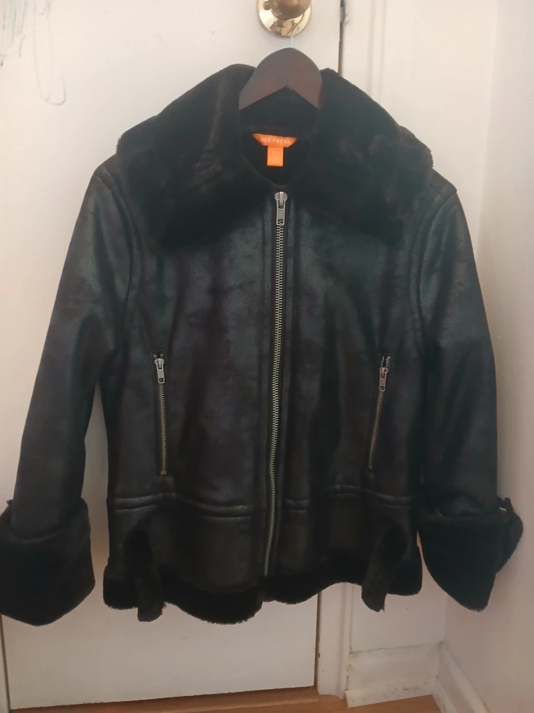 🥕Cozy Joe Fresh faux leather jacket in size small! The jacket is black with a faux fur lining. It's in great condition and perfect for the cooler weather.