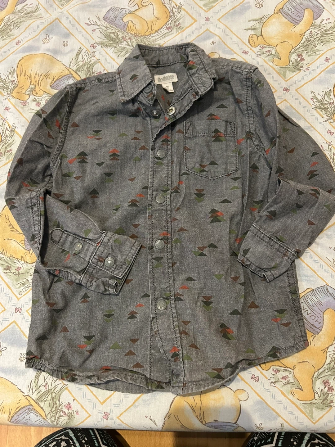 243Here's a cute button-down shirt from Gymboree! It's a size XXS (3) and features a cool geometric pattern. Perfect for your little one!