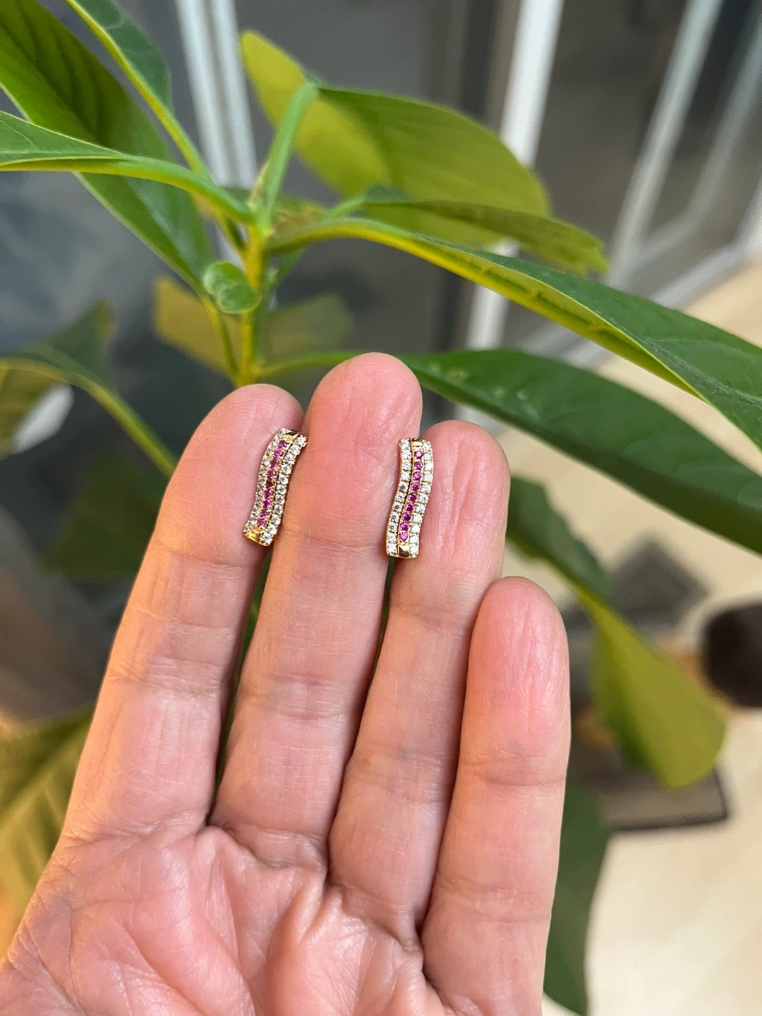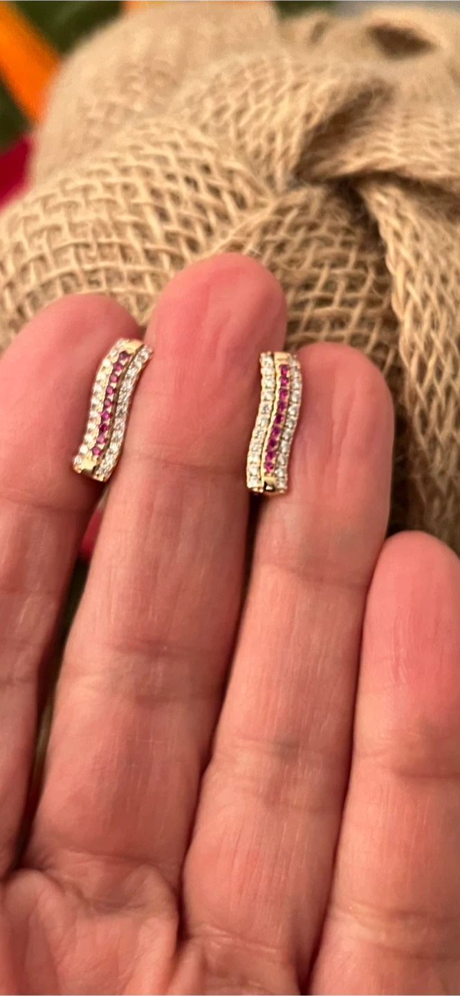They feature a row of pink zirconia stones flanked by white stones.