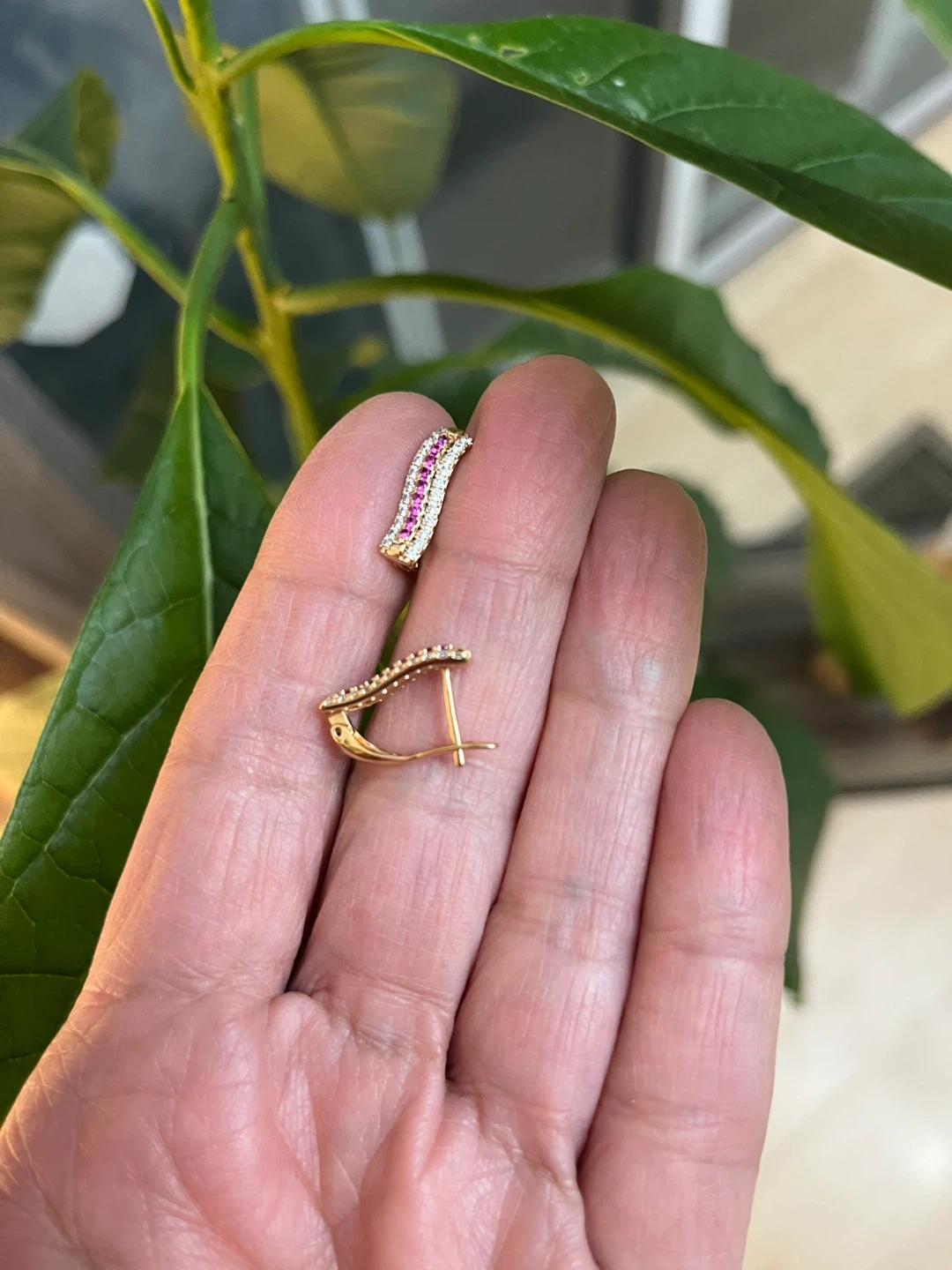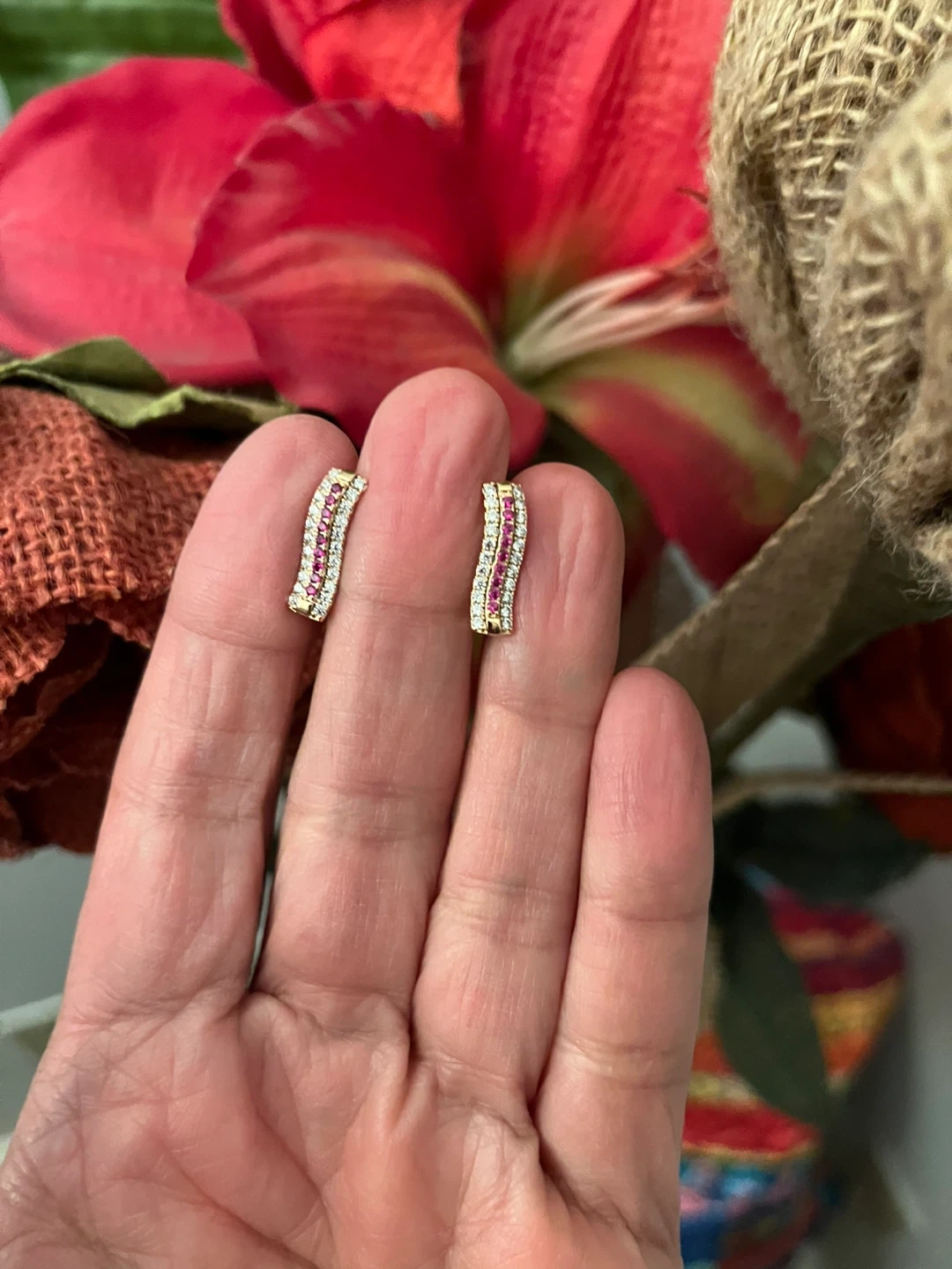 They feature a row of pink zirconia stones flanked by white stones.