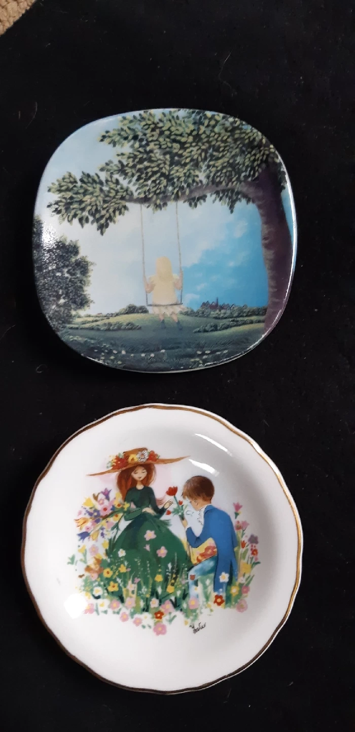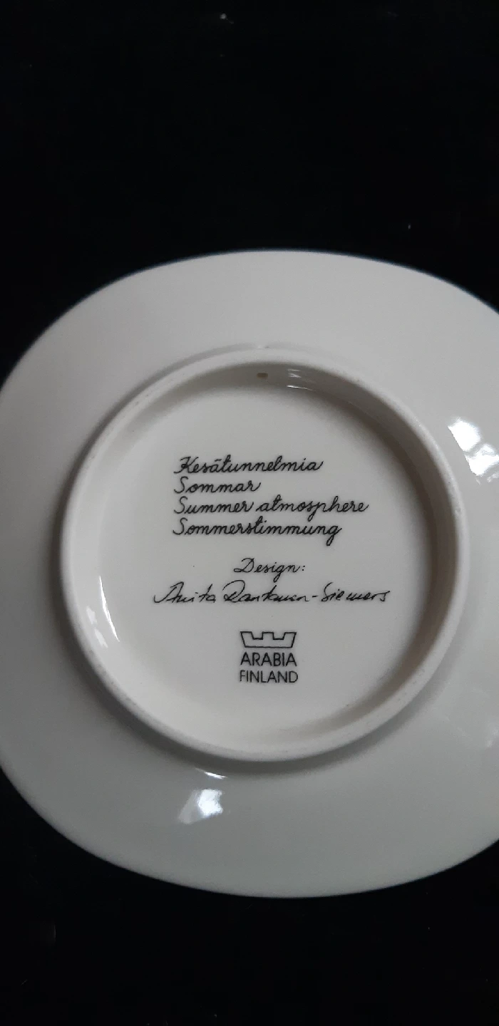 8401. Made by Arabia Finland, with a design called "Summer Atmosphere"...has a small hole for hanging 2. Made in England by Royal Grafton..bone china Both are in great shape and would look lovely on display!