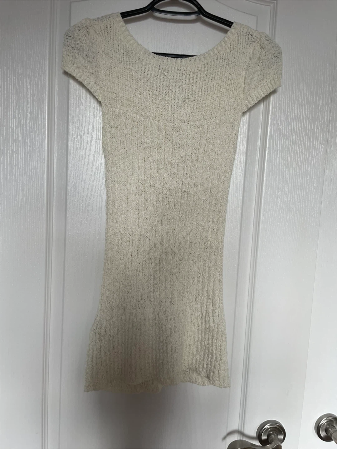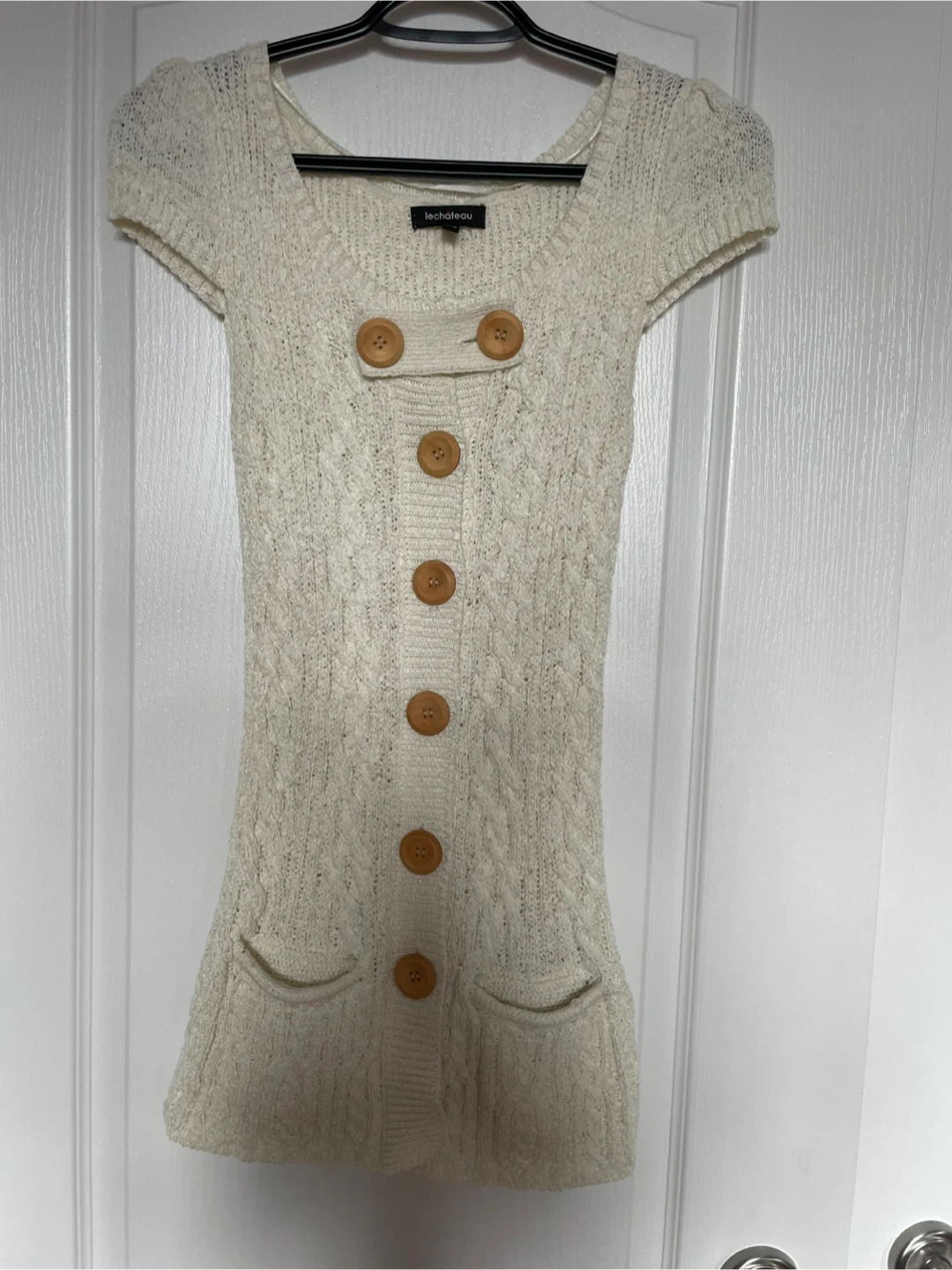 Cute Le Chateau cream knit dress with button detailing! It's a size XS/TP and made in Taiwan. Perfect for layering or wearing on its own