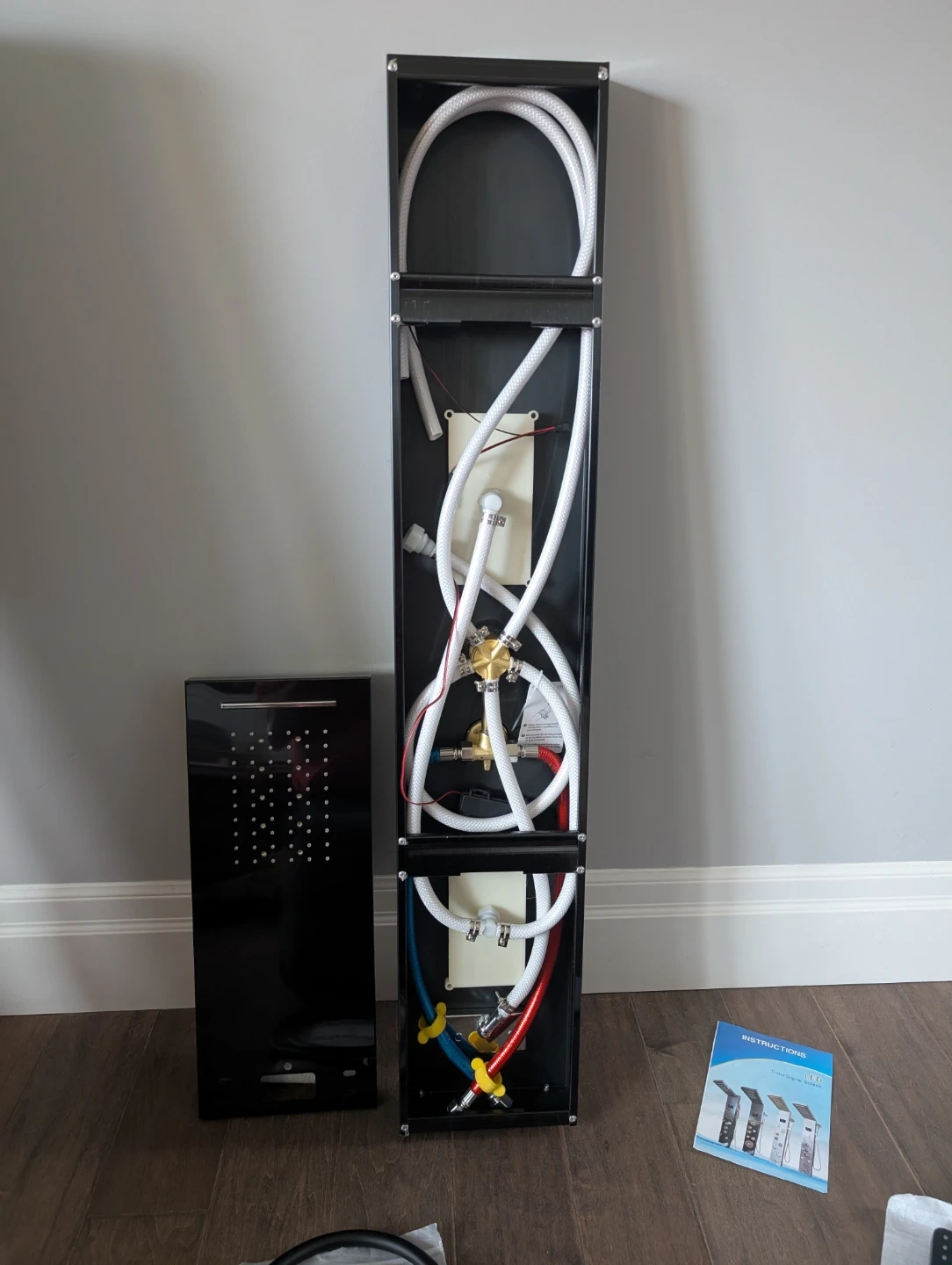Shower, Bathroom, Bath, Tub, Reno, Bathtub, Water, Tower, Massage, Rainfall, Waterfall, Jets, LED, Lights, Column, Valve, Wand, Spray, Renovation, Temperature, Pressure, Balanced, kit, system, trim