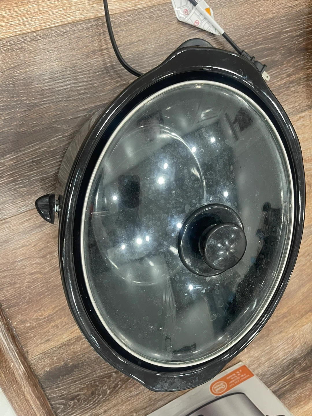 Selling a Hamilton Beach slow cooker. It works great for making delicious meals! It has a glass lid and a black exterior.