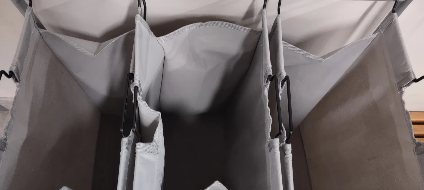 It's perfect for keeping your whites, darks, and colours separate. The body is made of sturdy stainless steel.