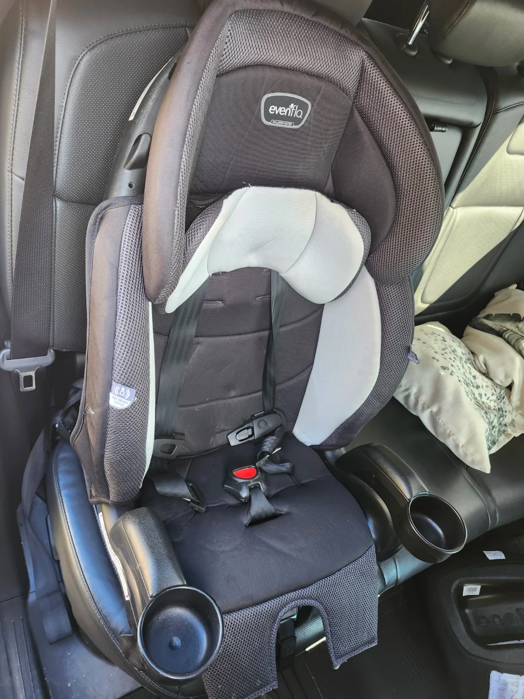 I'm selling an Evenflo EveryStage DLX car seat. It's in great condition and ready for a new home. This car seat is designed to grow with your child, offering extended use in each stage: rear-facing, forward-facing, and as a belt-positioning booster. It features a 10-year lifespan before expiration from the date of manufacture.