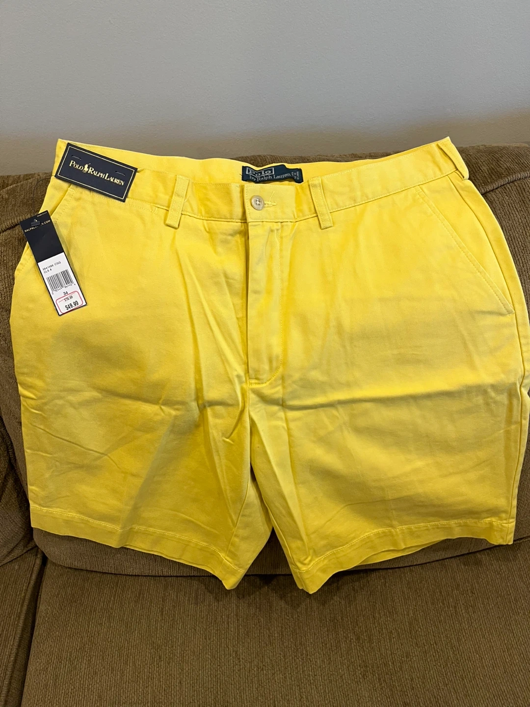 956These are a pair of Polo Ralph Lauren shorts in a vibrant yellow colour. They're size 34 and still have the tags on, so they're brand new! The original price was $49.99.