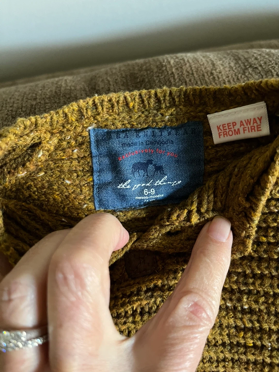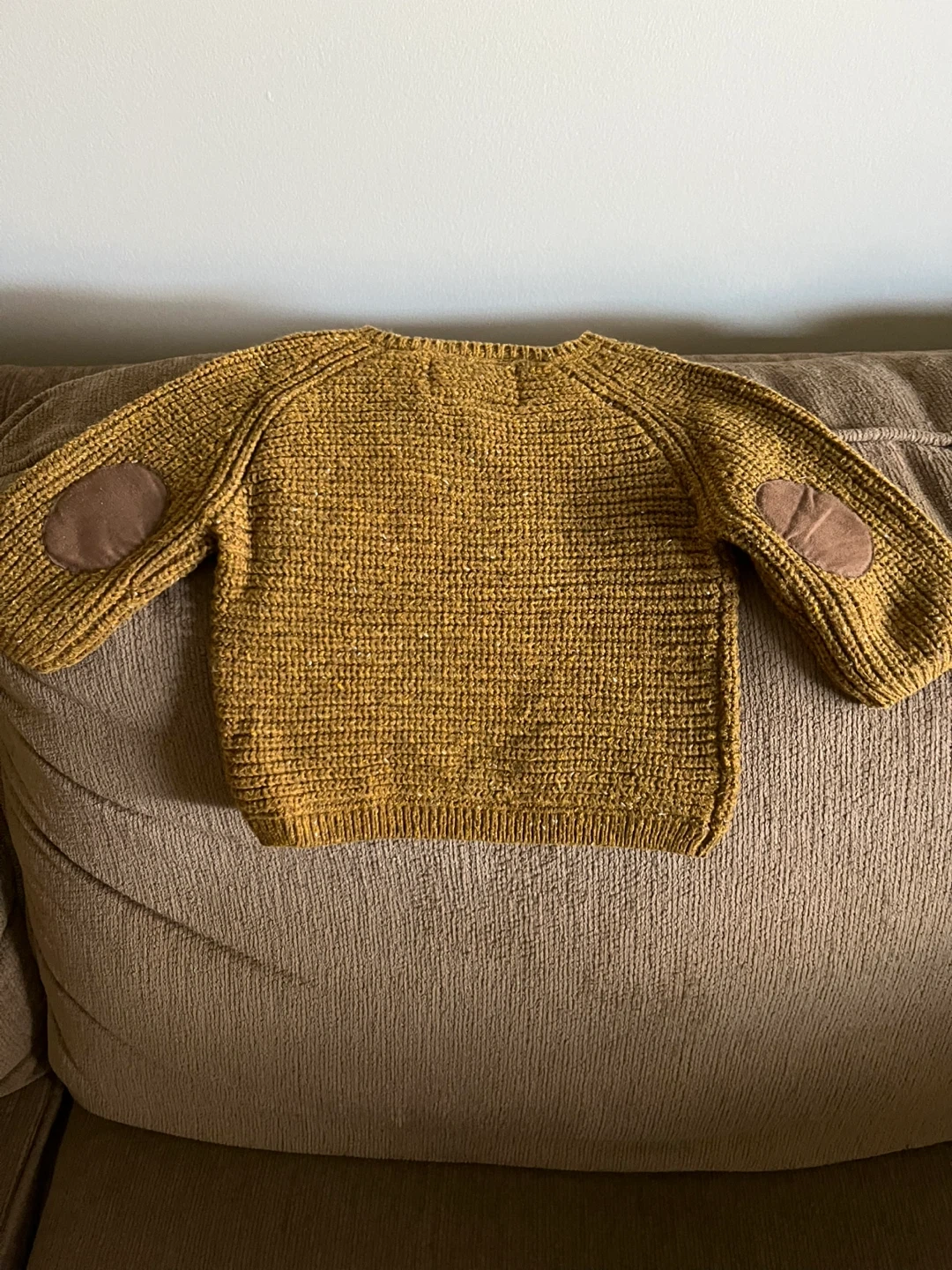 A cute Zara baby sweater, perfect for your little one! The size is 6-9 months. It's a lovely brown colour with elbow patches. From a smoke free home