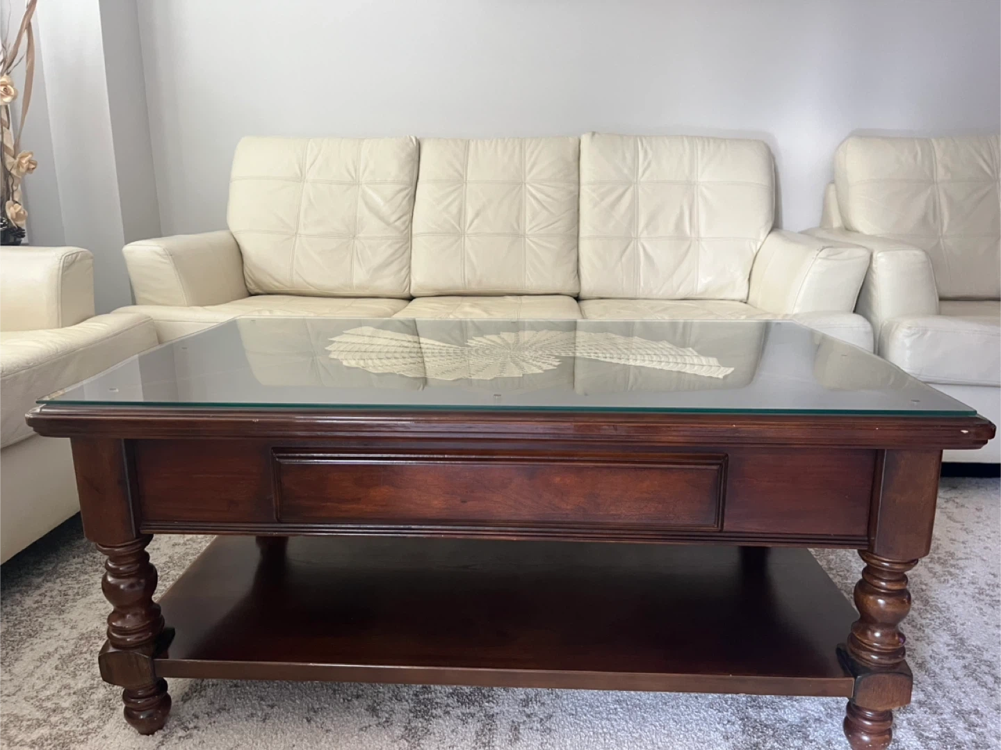 Glass Top Coffee Table - Dark Wood