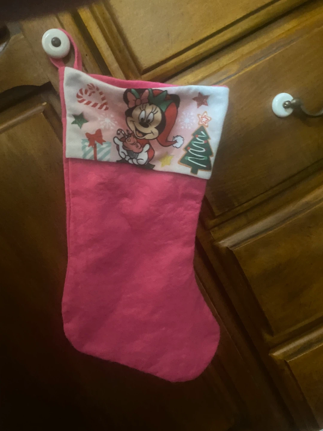 Here's a cute pink Minnie Mouse Christmas stocking! It's perfect for adding a touch of Disney magic to your holiday decorations