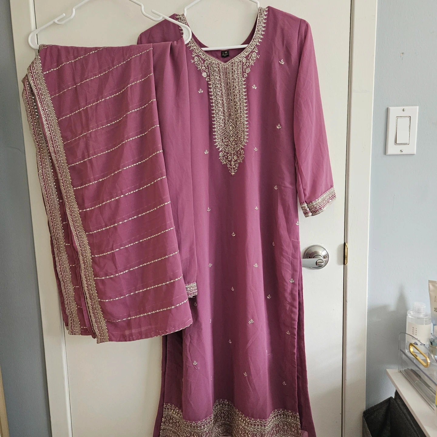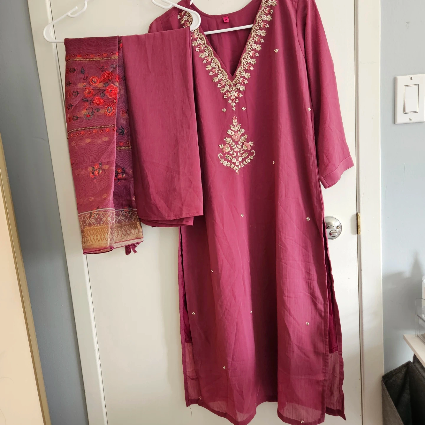 Selling a lovely maroon salwar kameez suit! It's a size small and features beautiful embroidery. Perfect for a special occasion or just feeling a bit fancy