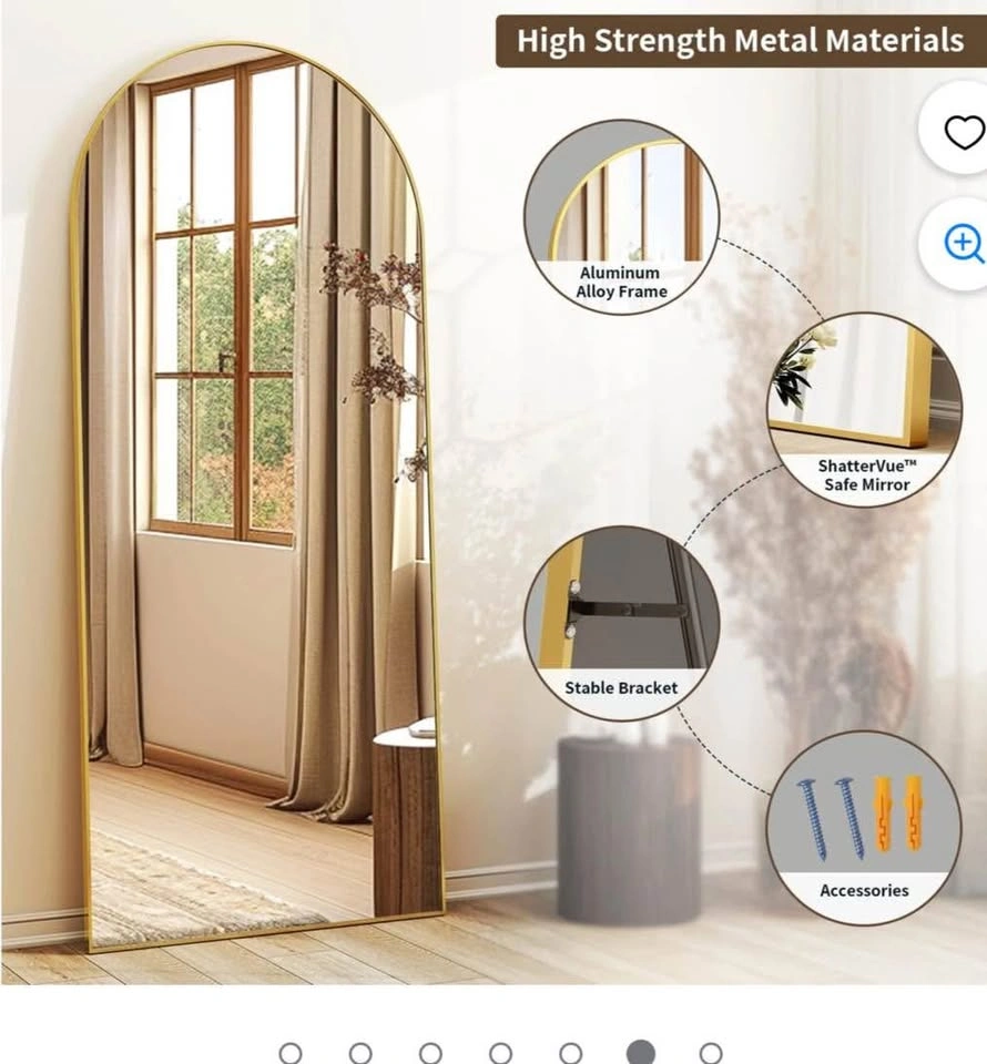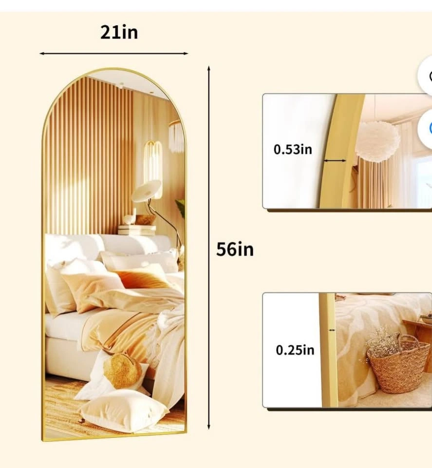 50Bring elegance and function to your space with this classic arched full-length floor mirror. Designed with a sleek gold metal frame, this mirror adds a luxurious touch to any bedroom, dressing room, or entryway. ✨ Features: Size: 56” H x 21” W Elegant arched top design Sturdy standing frame – can lean or stand freely Full-body view – perfect for outfit checks High-definition glass for a clear reflection Works beautifully with modern, vintage, or minimalist décor 📦Condition: New 📍Pickup: highway 401 and Progress Ave