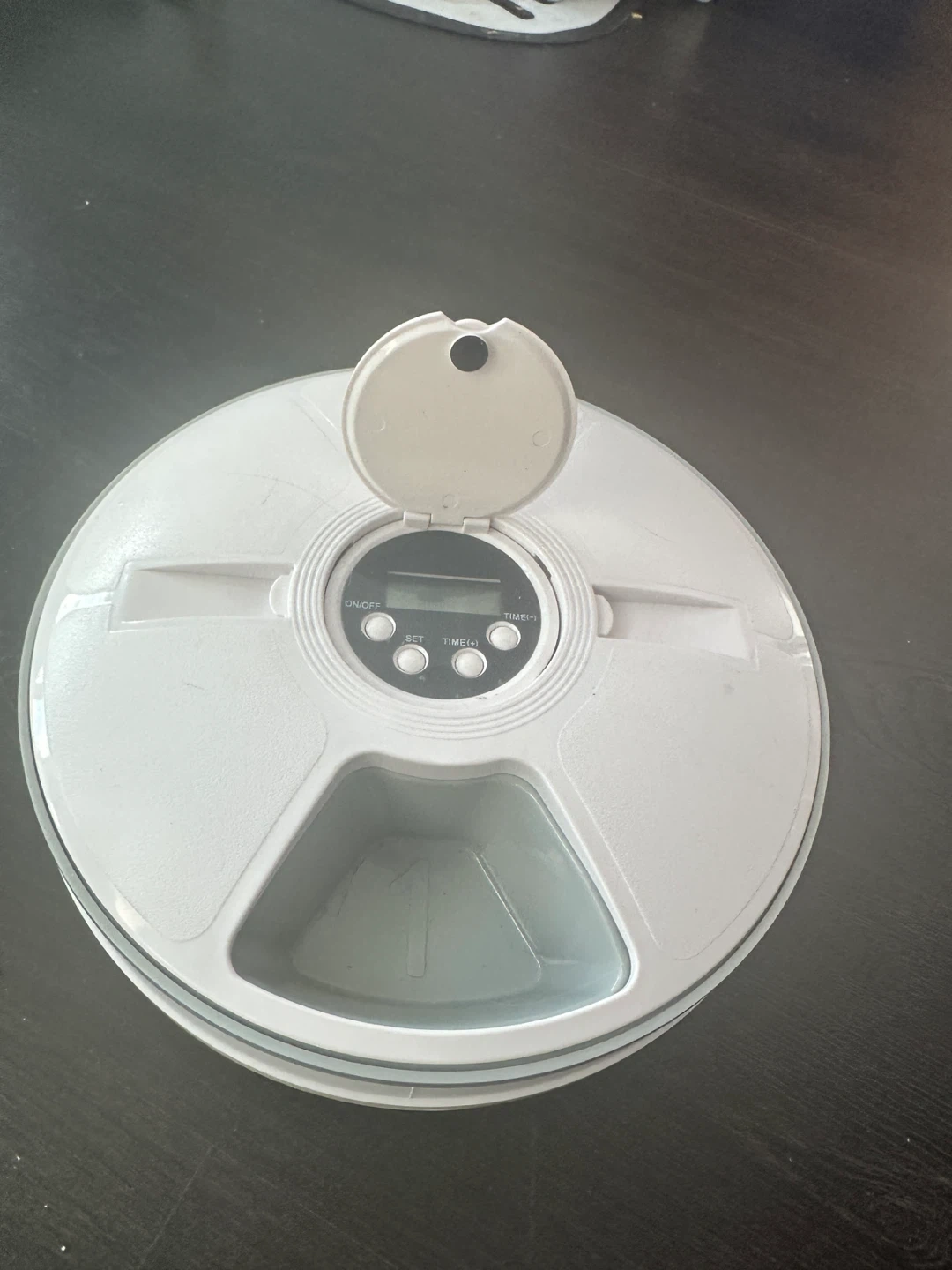 Selling an automatic pet food dispenser! It's perfect for keeping your furry friend fed on schedule. It has multiple compartments and a timer to set feeding times. Great for busy pet parents!