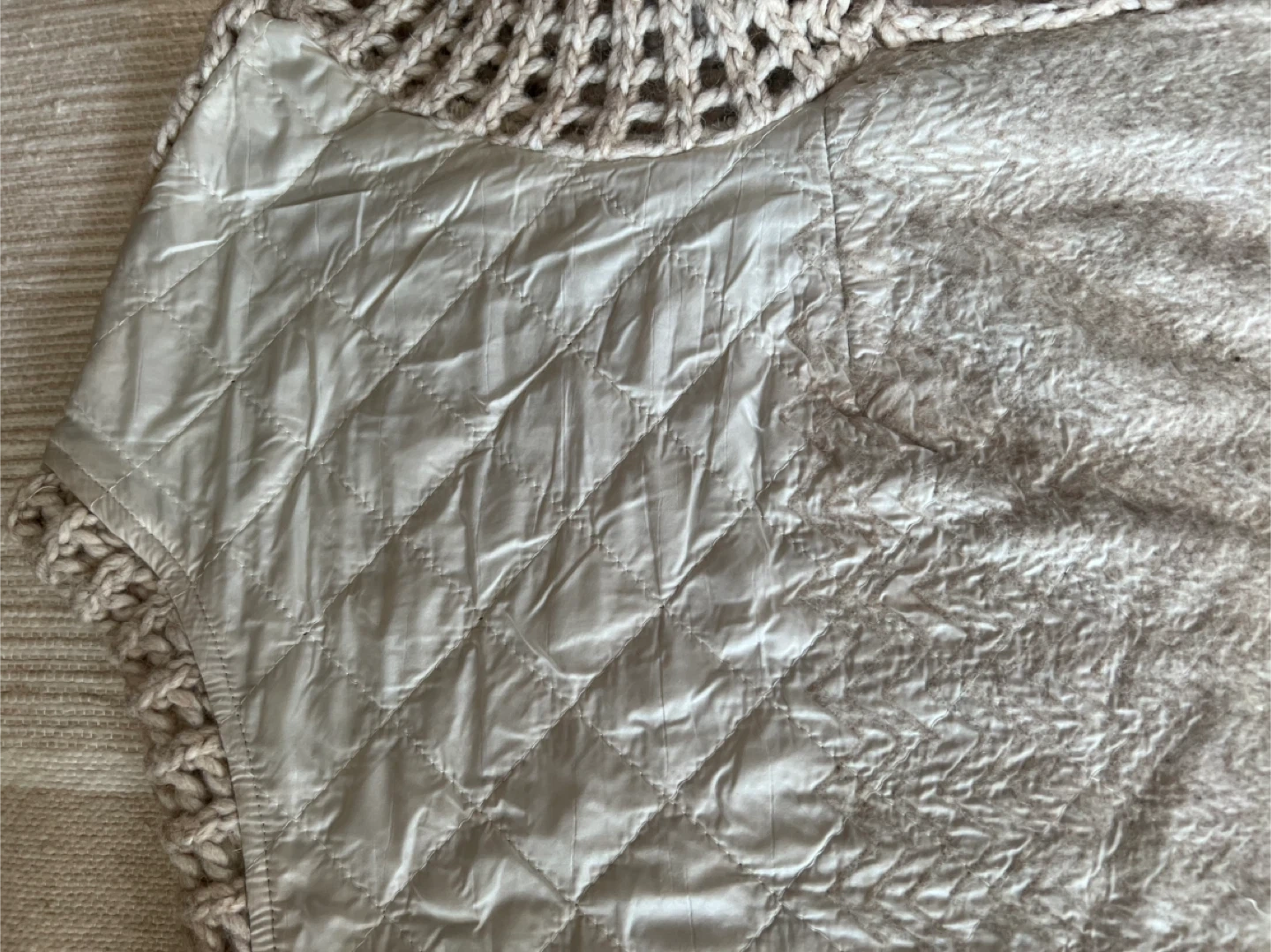 Cozy and stylish Tracy Reese crochet knit sweater in size M! This unique piece features a blend of materials, including acrylic, fleece wool, alpaca, viscose, nylon, and polyester. The shell is made of 60% acrylic, 15% fleece wool, 15% alpaca, and 10% viscose, while the combo consists of 32% wool, 32% acrylic, 28% nylon, and 8% polyester. Perfect for adding a touch of texture and warmth to your wardrobe