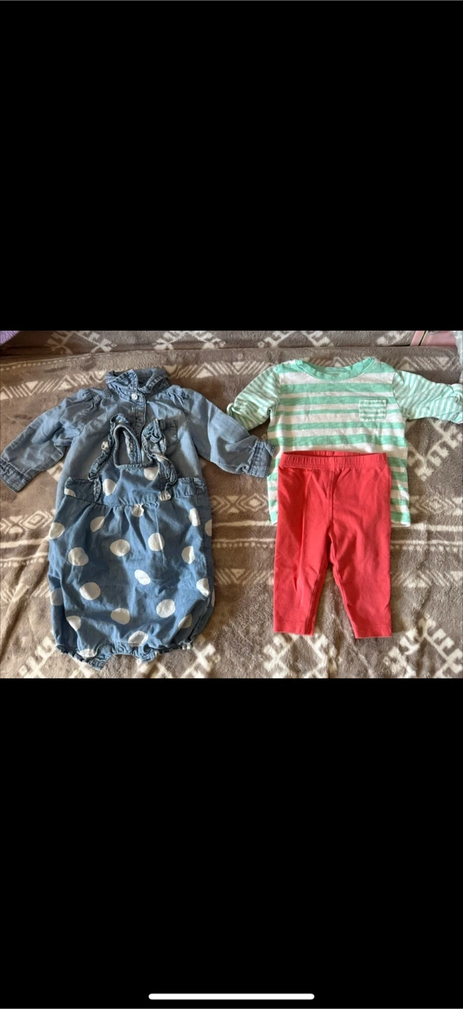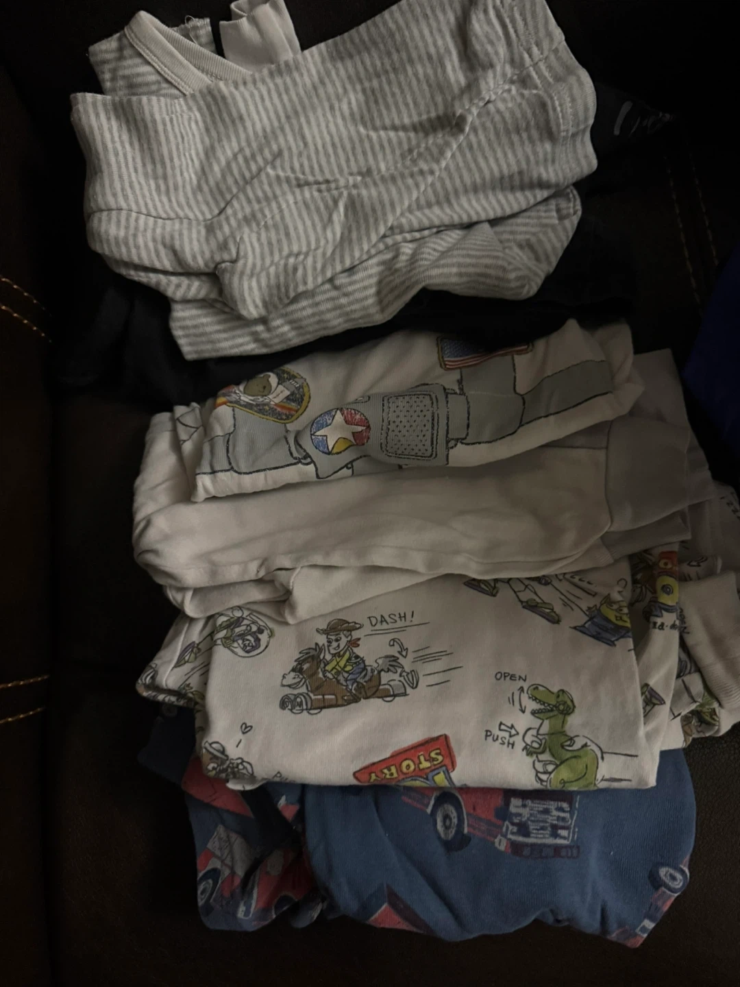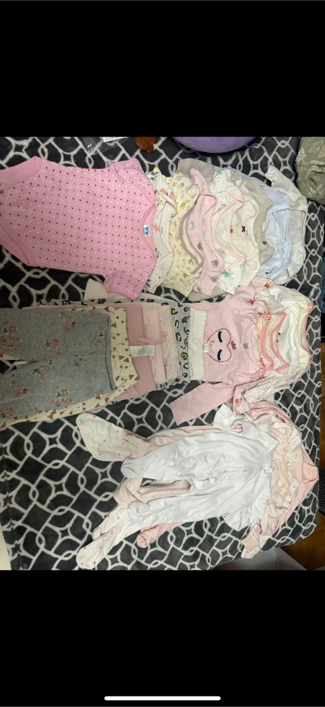 763Selling a bundle of baby clothes! There's a variety of onesies, outfits, and separates included. Perfect for stocking up! There a 4 pairs of pajama for 4y/o and a baby bouncer ( if that’s what it called ) Check the pictures for more details