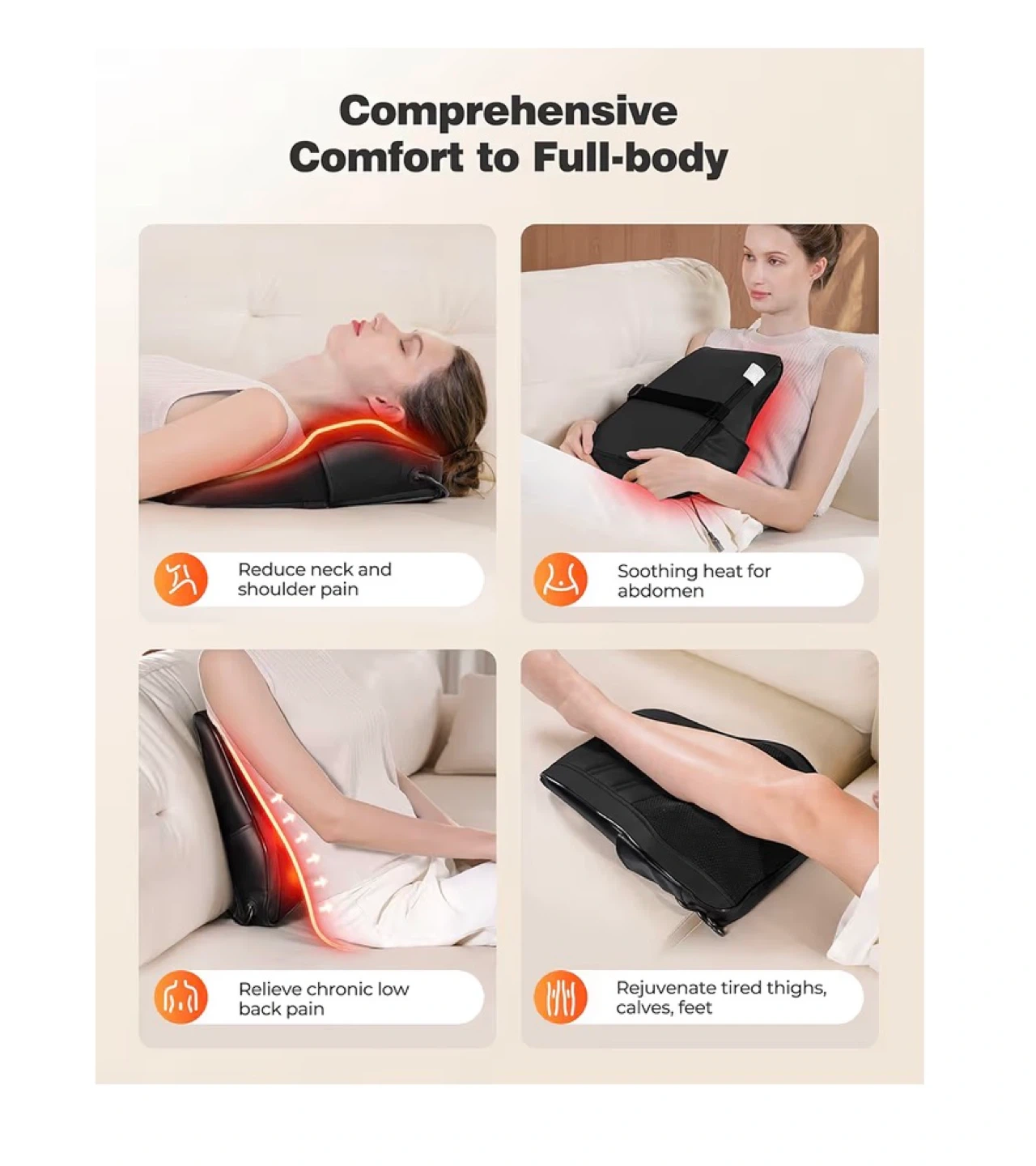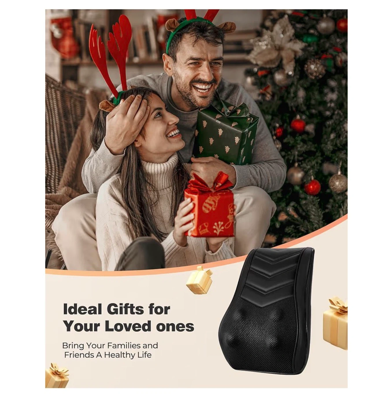 Get ready to relax with this lifelike Shiatsu massager! It's perfect for relieving back pain with its deep tissue massage. It features 16 nodes, 3 speeds, and bi-directional movement. Plus, it has soothing heat with 2 levels and 2 zones, ranging from 100°F to 138°F. It also has an ergonomic design to fit the body's curve and an easy-to-use remote. Enjoy a 15-minute auto-off function for safe and convenient use