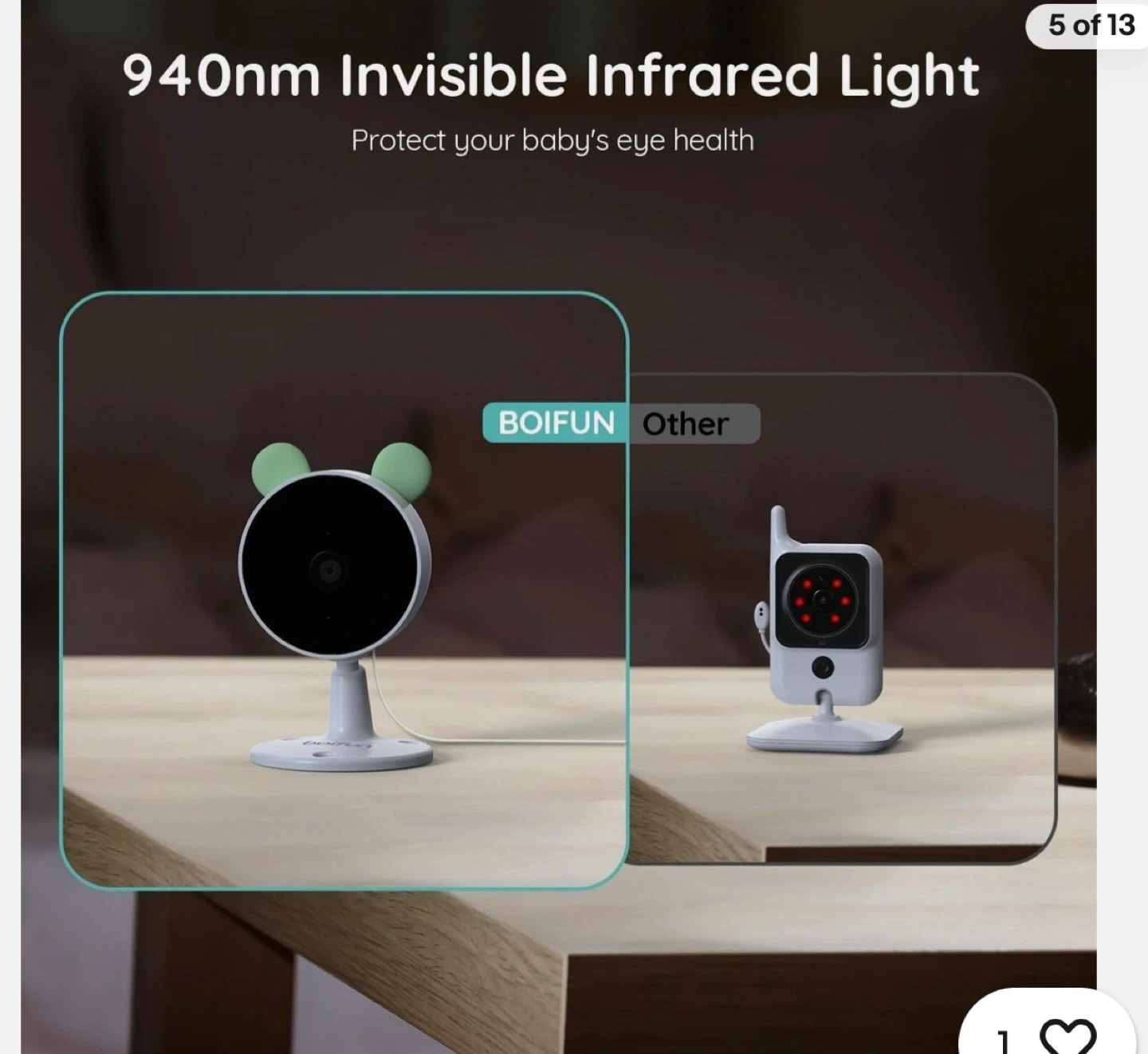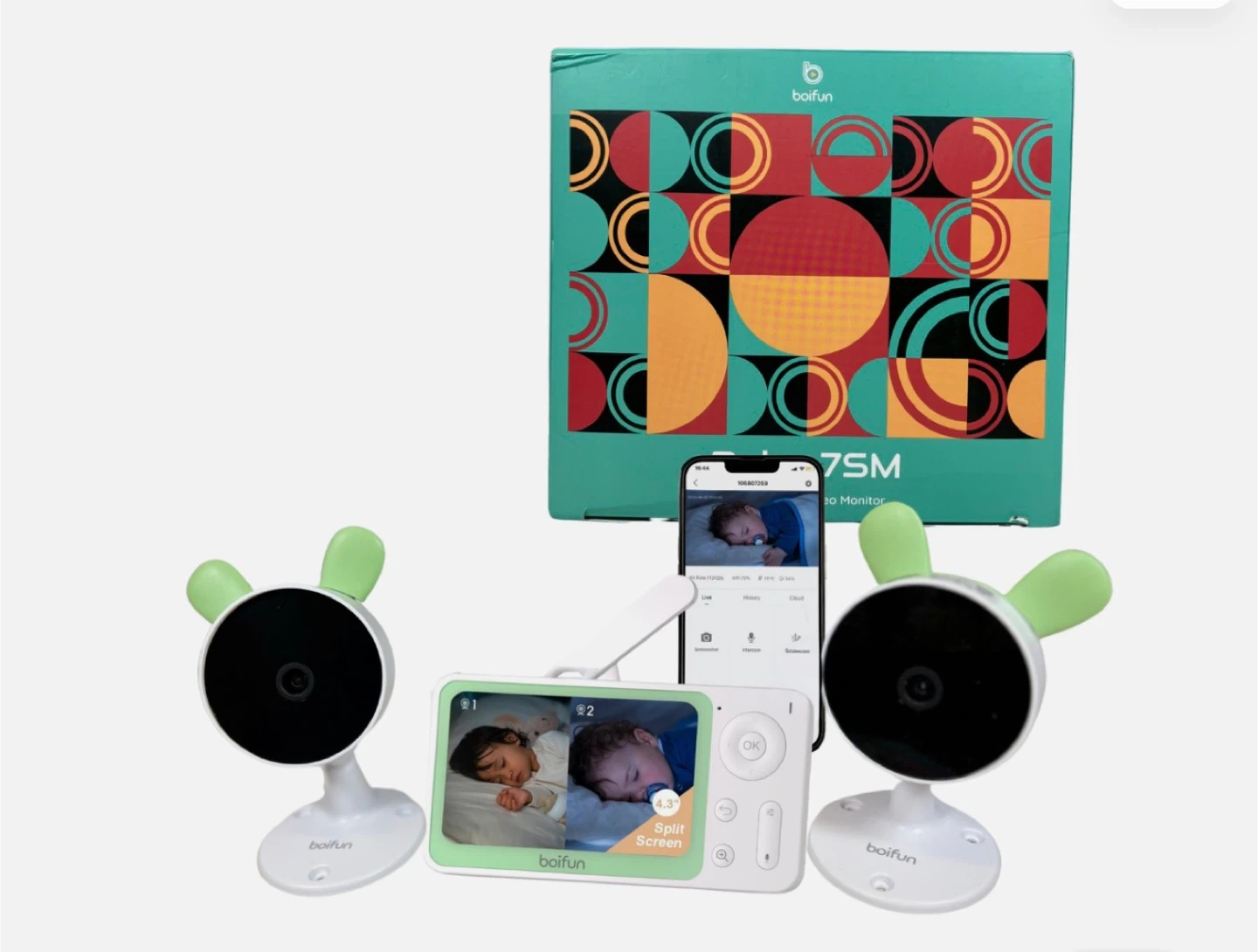 63I'm selling a Boifun baby monitor that comes with two cameras! It has continuous care with 6 hours of battery life and 4 days of standby. It also features 940nm invisible infrared light to protect your baby's eye health. The angle can be adjusted manually for 100% privacy for you and your family. It also comes with a split screen!