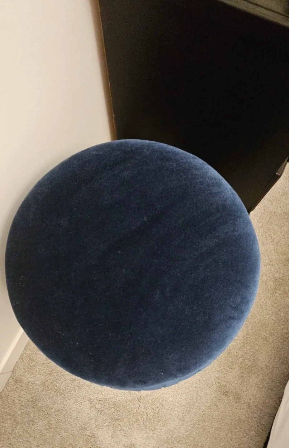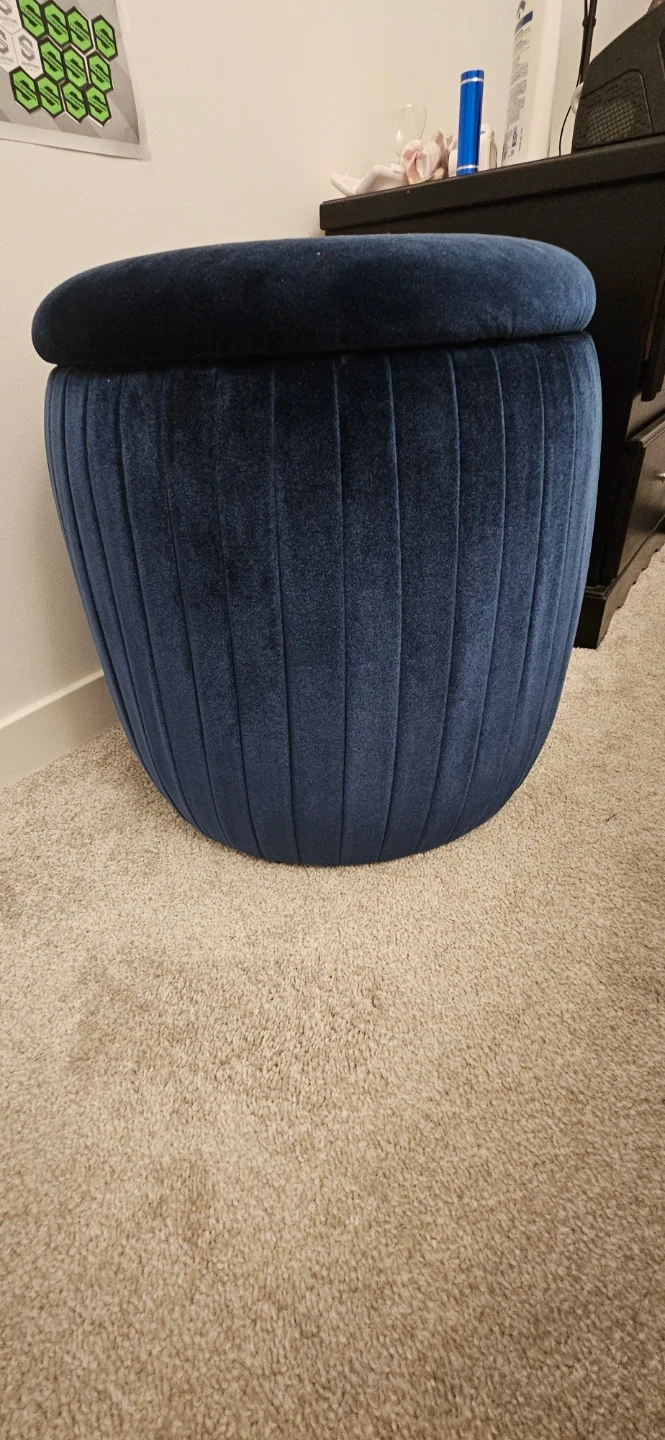 Selling a lovely blue velvet storage ottoman. It's in great shape and perfect for adding a touch of elegance to any room while providing extra storage space.