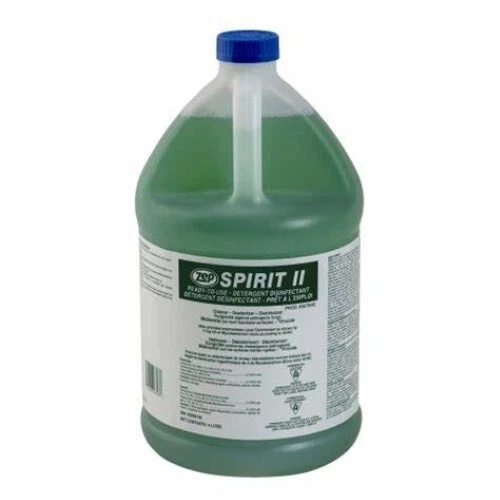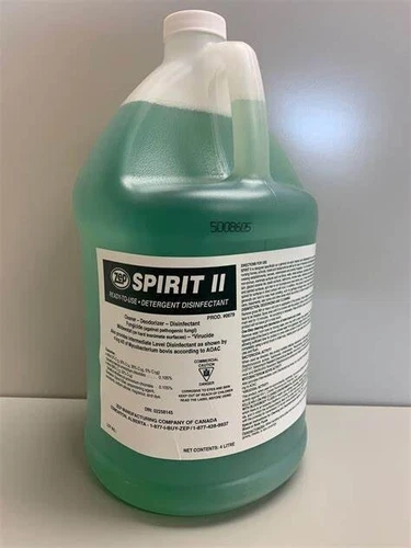 5Keep your bathroom spotless and germ-free with Zep's SPIRIT II DETERGENT DISINFECTANT CLEANER. This alcohol-free surface cleaner comes in a 4L liquid form and is perfect for tackling tough dirt and grime. Not only does it clean surfaces effectively, but it also disinfects, making it a great choice for maintaining a healthy environment. Plus, it has a scent-free formula, making it ideal for those with sensitivities to strong smells. With a pack of one, this cleaner is a reliable and long-lasting addition to your cleaning routine. Disinfects pre-cleaned, hard, non-porous surfaces. Simply spray product onto surface, allow proper contact time, then wipe off with damp sponge or paper towel. After cleaning food contact surfaces, rinse with potable water before re-use. Designed specifically as a general non-acid cleaner and disinfectant for use in homes, hospitals, nursing homes, schools, transportation,lab terminals, office buildings, lodging establishments and athlete/recreational facilities where housekeeping is of prime importance in controlling the hazard of cross contamination. Primary Function – Disinfectant; Spirit II is an EPA-registered disinfectant. Secondary Function – Germicidal Cleaner and Deodorizer; Powerful detergent system quickly cuts through grease and heavy soil to allow for easy wiping EPA Registration Number – 1839-83-1270