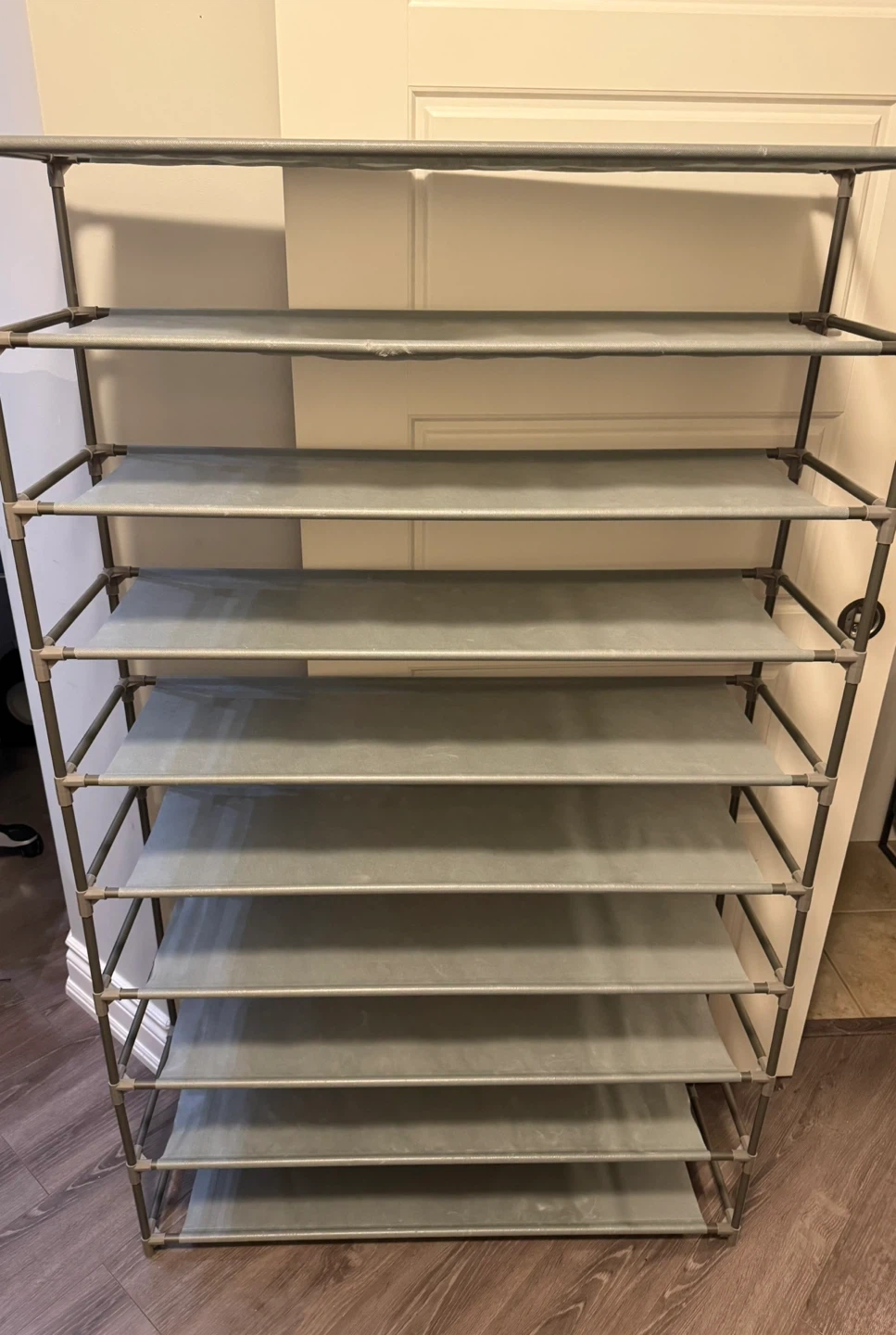 Giving away a shoe rack with 10 tiers! It's perfect for organizing your shoes and keeping them off the floor. It's in good condition and ready for a new home.