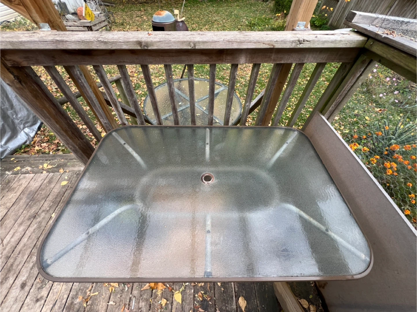 243Selling an outdoor glass top table. It's in good condition and ready for your patio or deck!