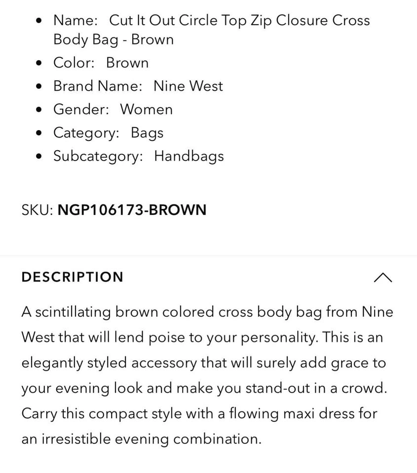 Buy & SellBrand new NIN WEST Cut It Out Circle Cross Body BagBrand new NIN WEST Cut It Out Circle Cross Body Bag$45Brand new NIN WEST Cut It Out Circle Top Zip Closure Cross Body Bag Brown Fastest pickup preferred No holds no delivery Price is firmWHERE TO MEETCheck LocationView MapSELLERverifiedHaichCountry Hills49236 reviews0 chats·1 favorites·2 views