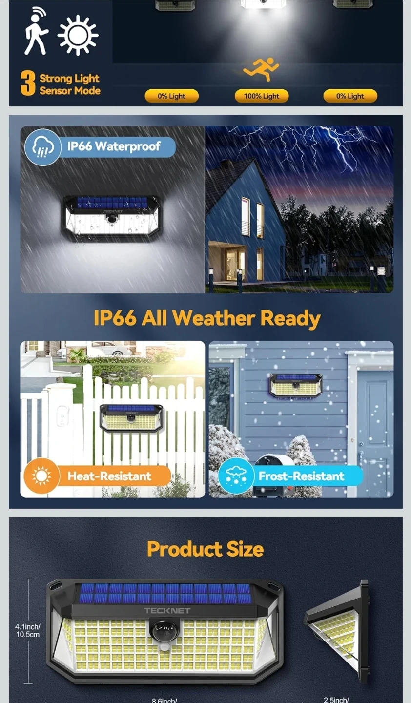 New 2 TECKNET 4200Lm Solar Lights Outdoor
