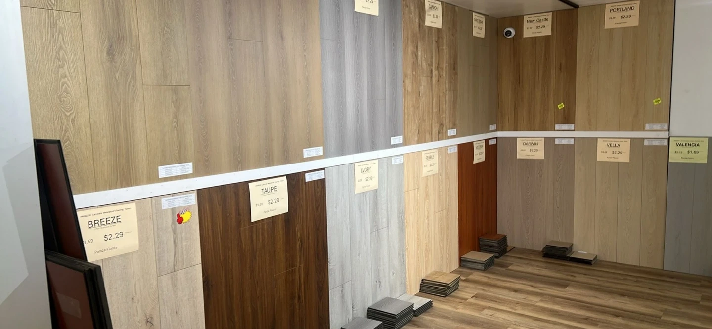 Prices starts from $1.29 per sqft upto $7 per sf for vinyl glue down, vinyl planks , laminate water resistant, laminate waterproof 72hrs, hardwood , herringbone hardwood , vinyl tiles and other flooring accessories available