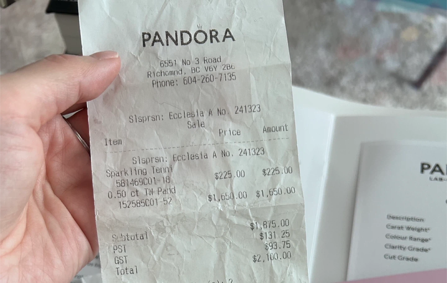 Selling a beautiful Pandora diamond ring! It's a 0.50 carat lab-created diamond with G-J colour range and VS+ clarity grade. The cut grade is excellent. Also, the band is white gold. I rarely used it. Comes with the original receipt and certificate!
