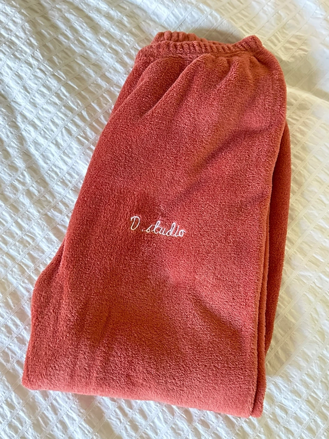 Cozy up in these super soft lounge pants! They're a comfy coral colour and in great condition. The size is approximately xxs - xs (women size). Perfect for relaxing at home!