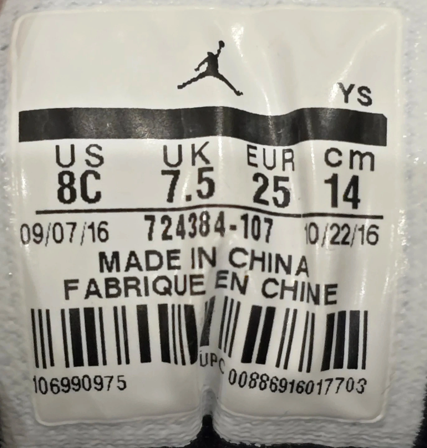 These Jordan's are in EXCELLENT condition and only worn a few times, then, my son outgrew them. They feature the classic Jumpman logo! This is a perfect beginner Jordan for your little one's first steps or adding to their sneaker collection!