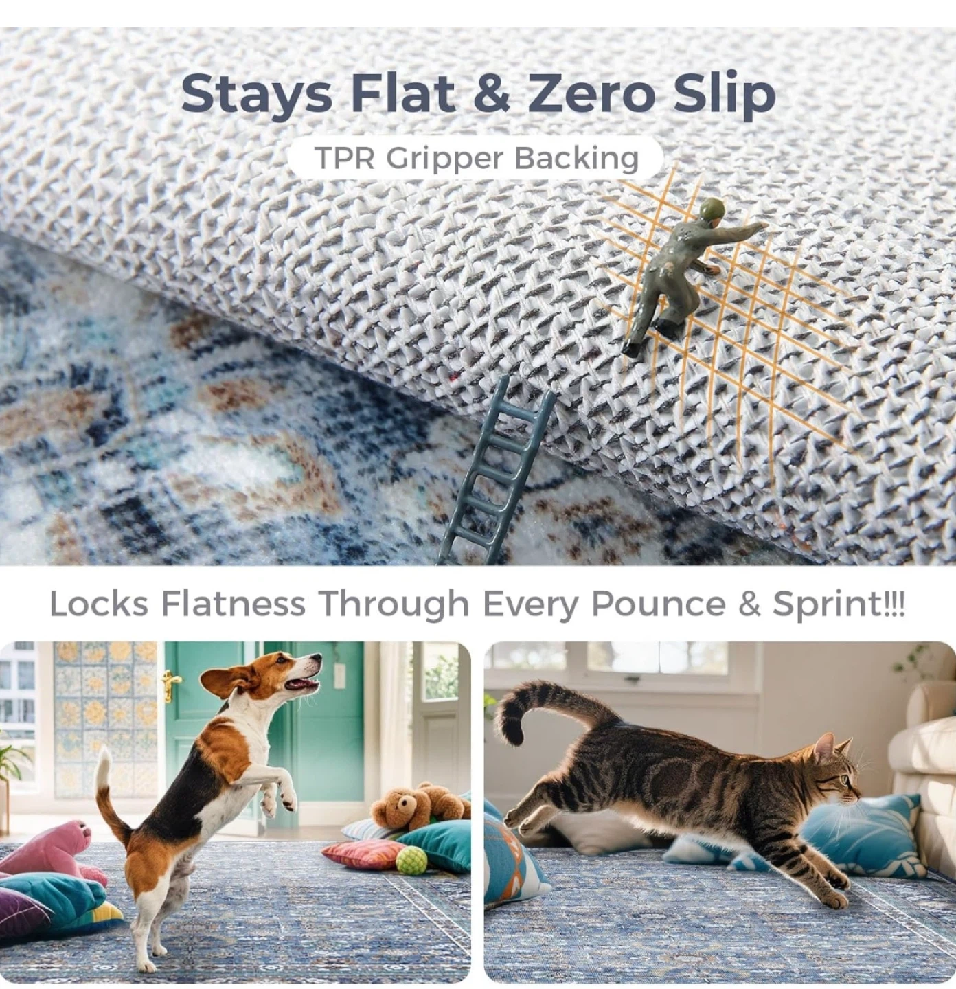 This OPPDREAM area rug adds authentic vintage vibes to any room! It features a TPR Gripper Backing to stay flat and zero slip!