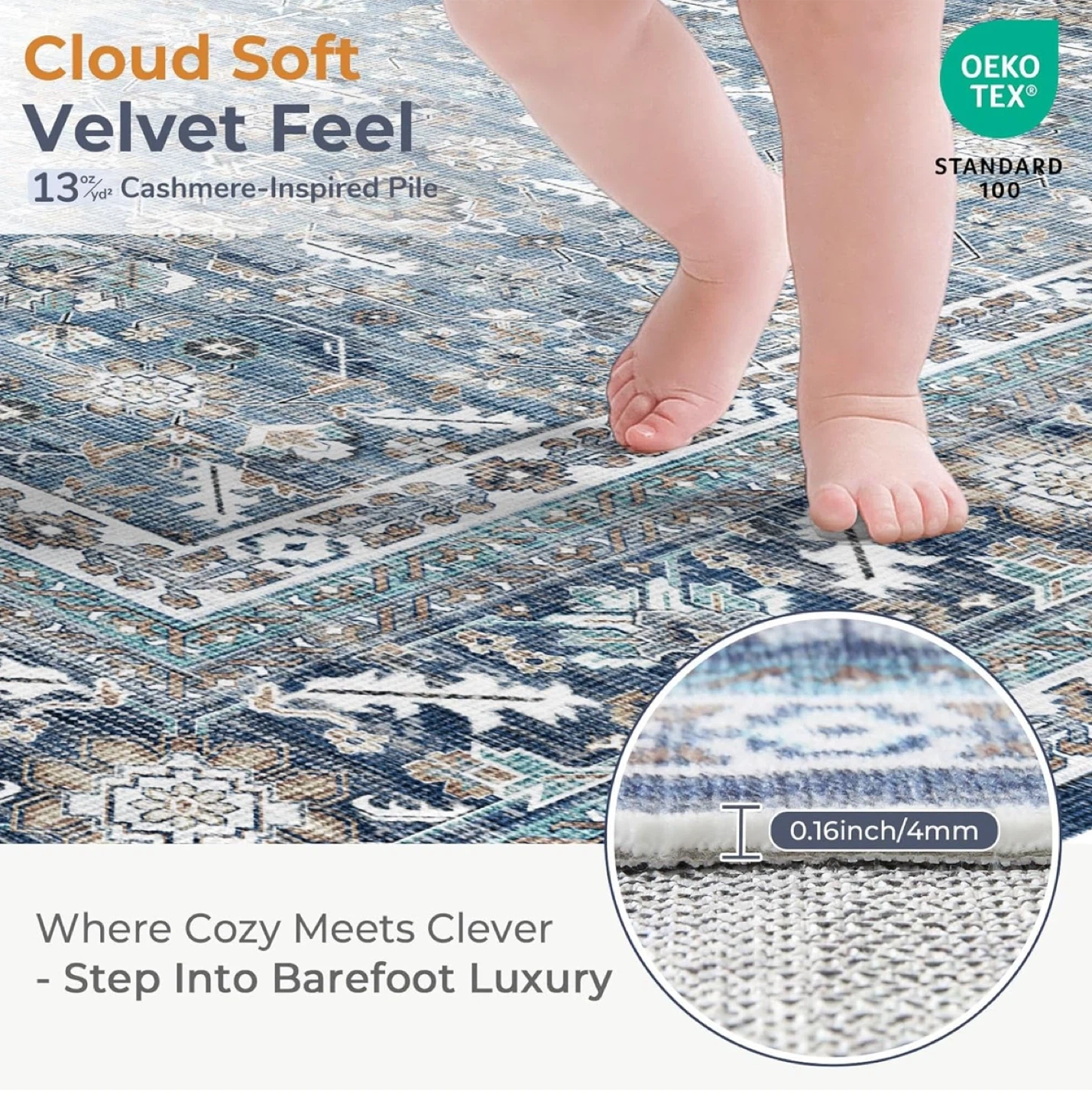 OPPDREAM Vintage Blue Area Rug 9x6 ft