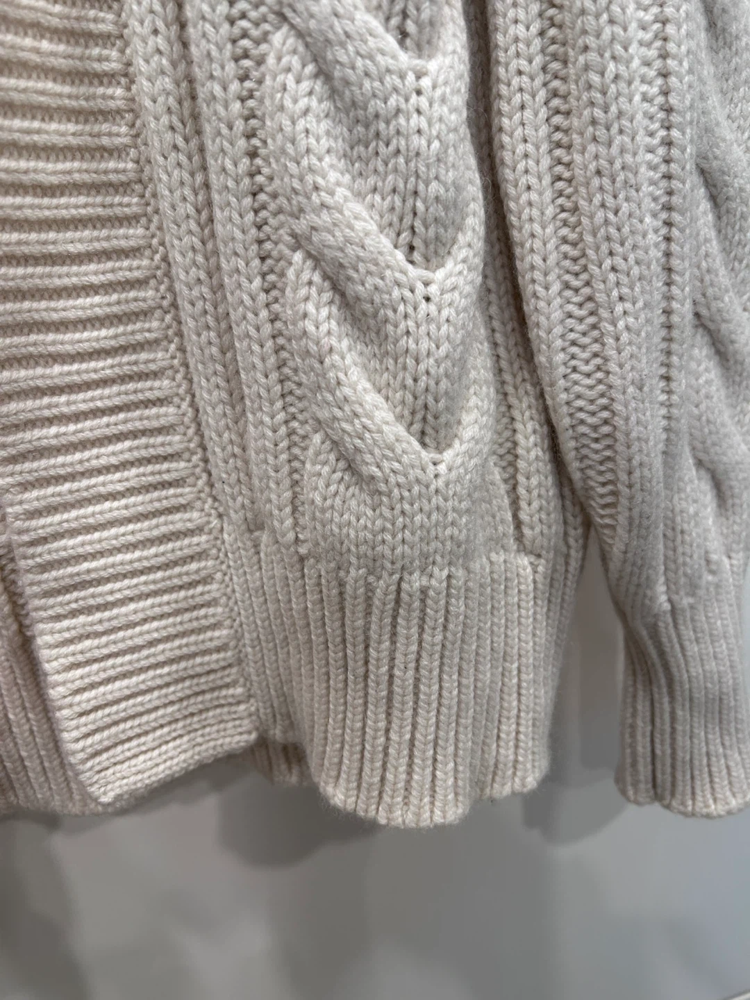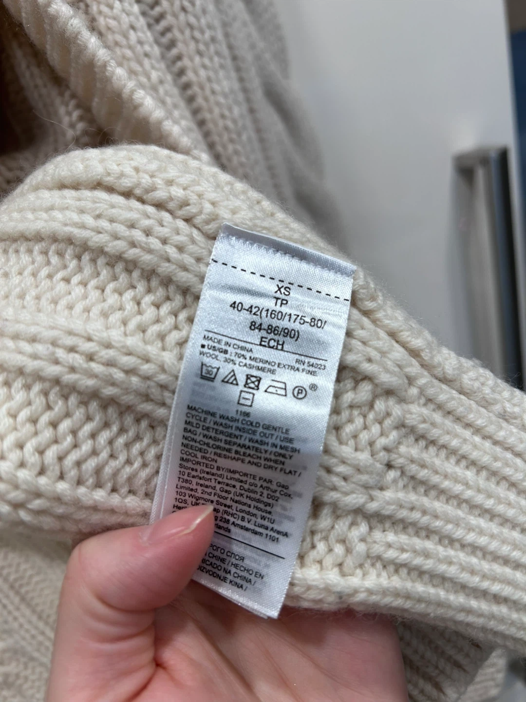 Cozy Banana Republic cardigan in size XS! It's made from a soft blend of 70% merino wool and other fibres, perfect for layering. This cardigan has a lovely cable knit design, adding a touch of texture to any outfit. I worn only 3 times.