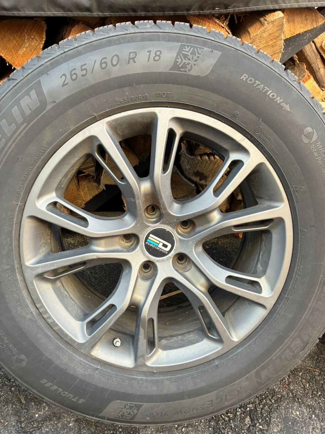 Selling a set of Euro Design wheels mounted with Michelin X-Ice Snow SUV tires! The tires are size 265/60R18 and feature a winter tread pattern for great traction in snowy conditions