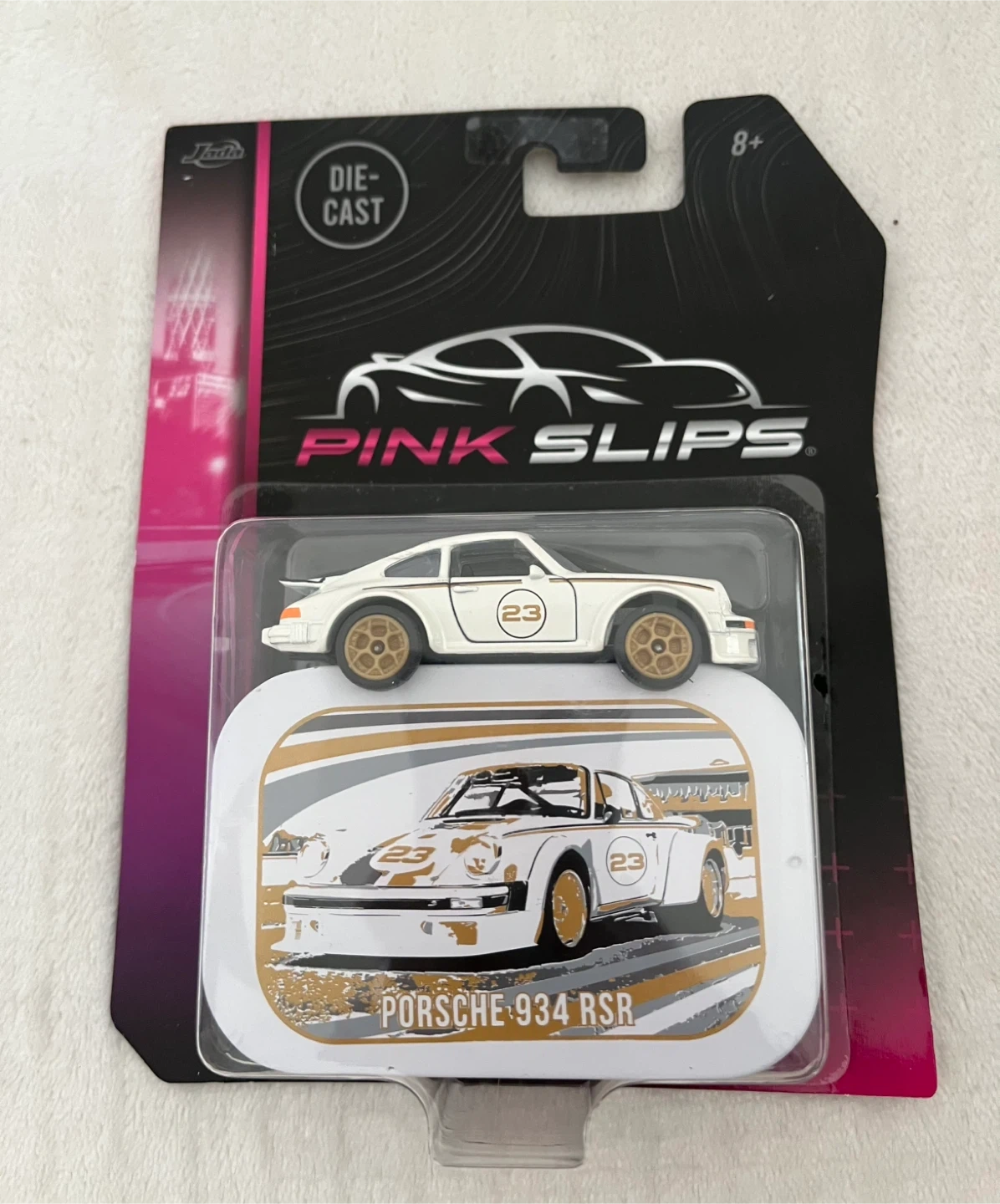 Selling a Jada Toys Pink Slips die-cast model of the Porsche 934 RSR. It's still in its original packaging and ready for a new home! Perfect for collectors or anyone who loves cool cars