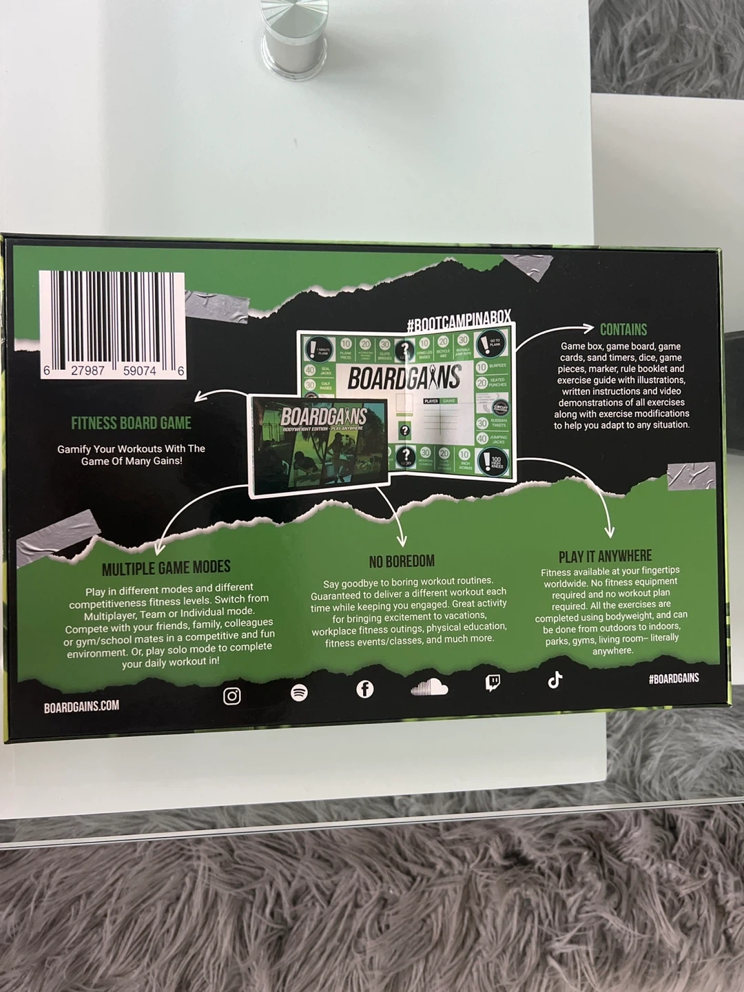 268Get ready to gamify your workouts with the Boardgains Bodyweight Edition! This fitness board game is designed to add some fun and competition to your daily exercise routine. It includes a game board, game cards, sand timers, dice, and an exercise guide with illustrations and demonstrations to help you adapt to any situation. Perfect for solo workouts or competing with friends, family, or colleagues! A great Christmas gift. It was never used.