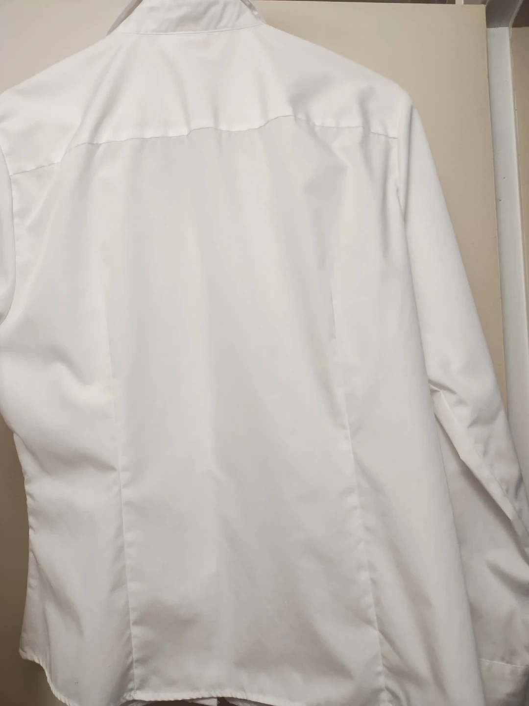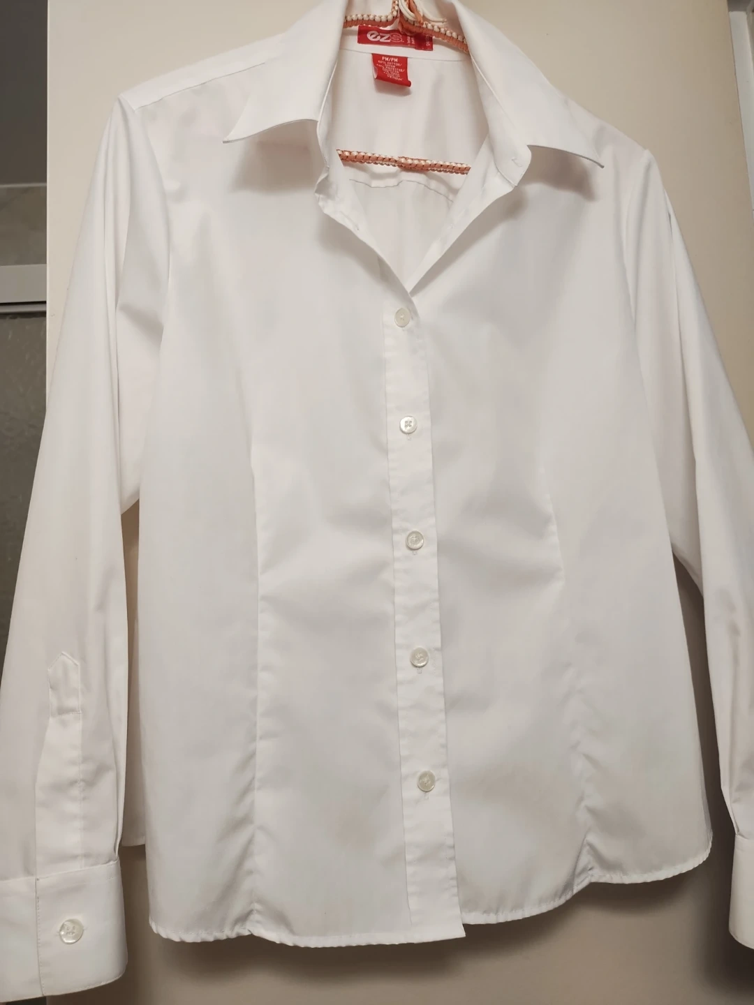 636Selling a crisp, white button-up shirt from Ets by Haggar. It's a petite med. size PM/M. The material is a blend of 60% cotton and 40% polyester, making it comfy and easy to care for!